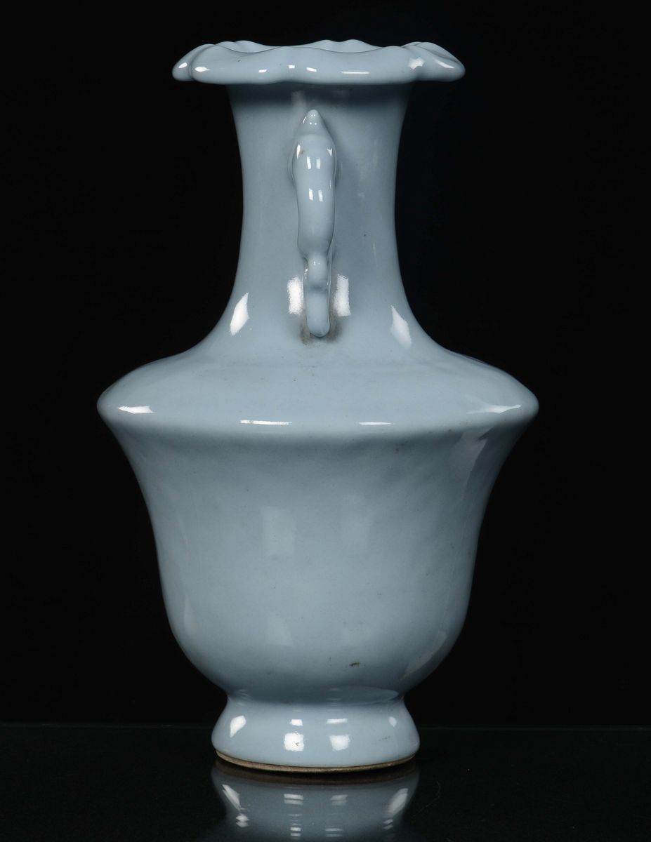 Vaso in porcellana Claire de Lune a due anse, Cina, Dinastia Qing, XIX secolo