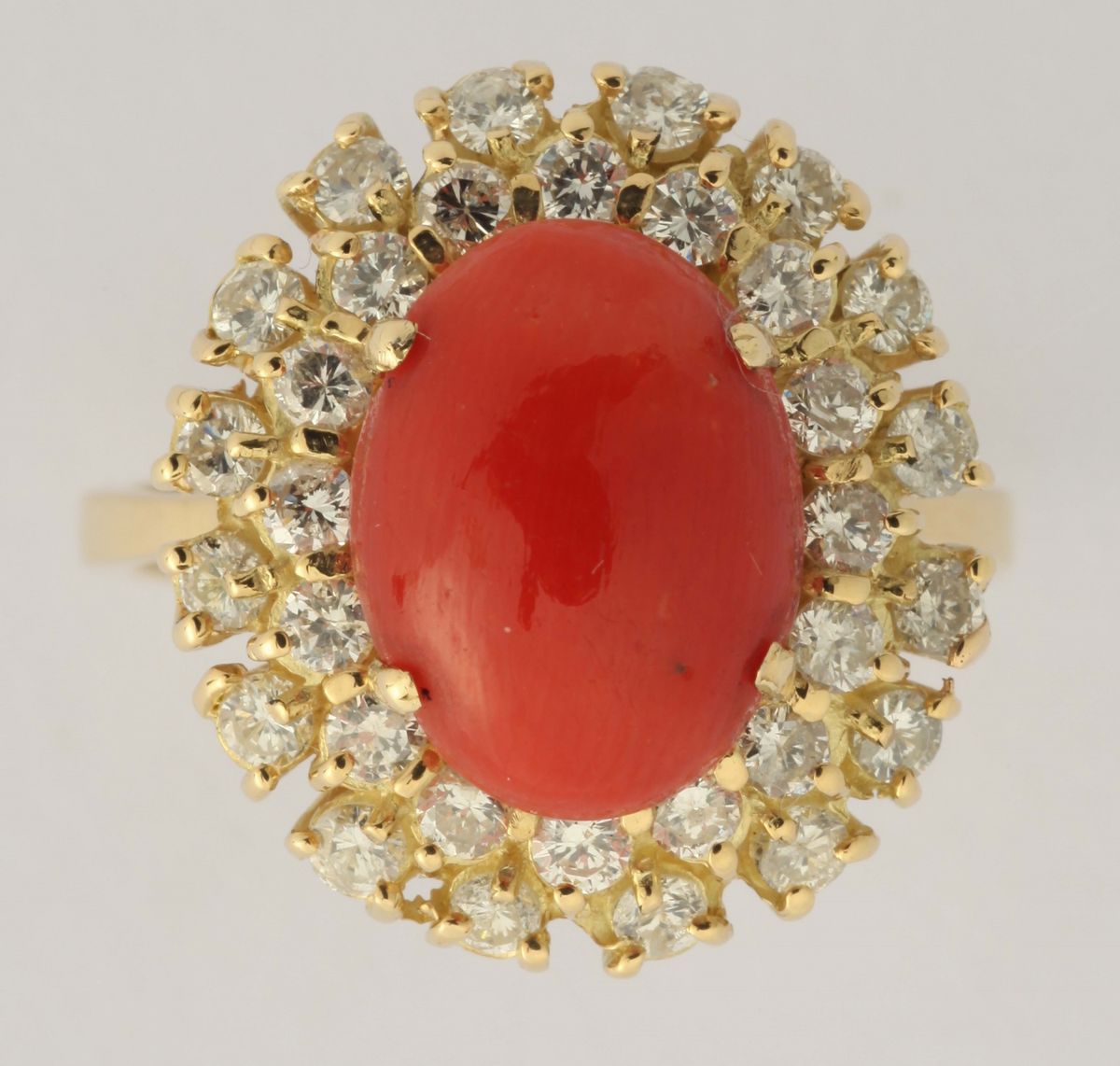 Anello con corallo mediterraneo e diamanti a contorno