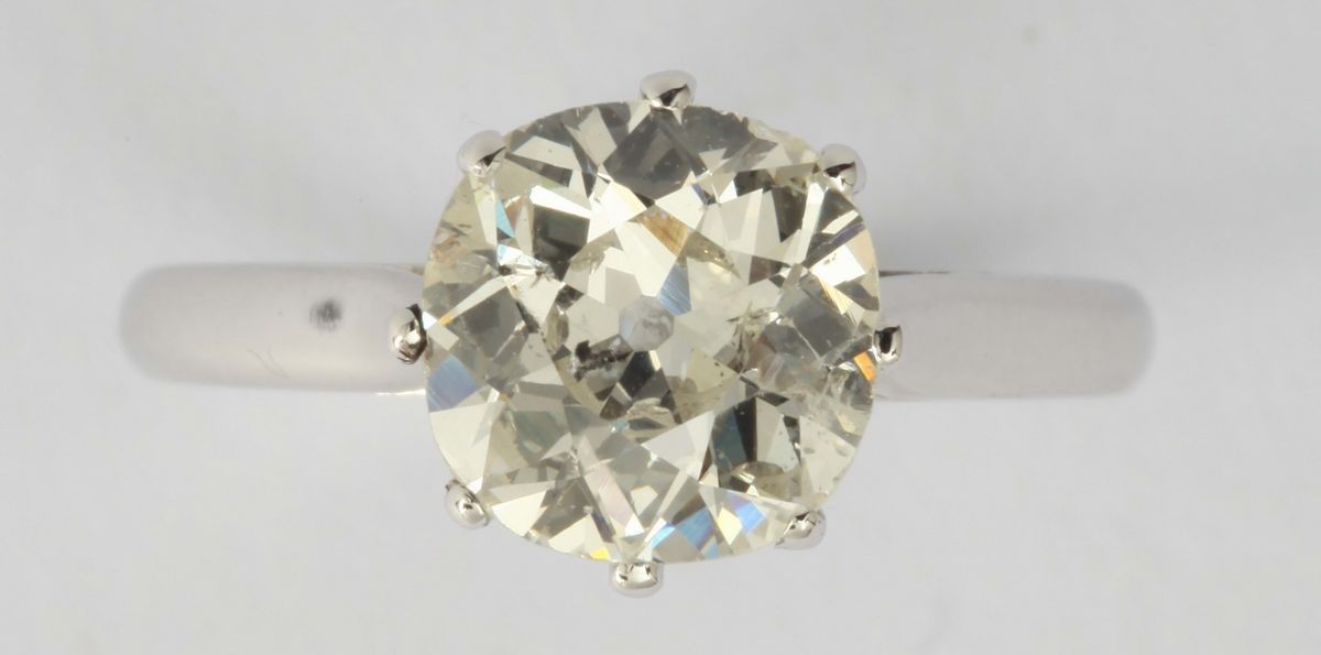 Anello con diamante taglio cuscino vecchio di ct 1,78, colore L, purezza P1