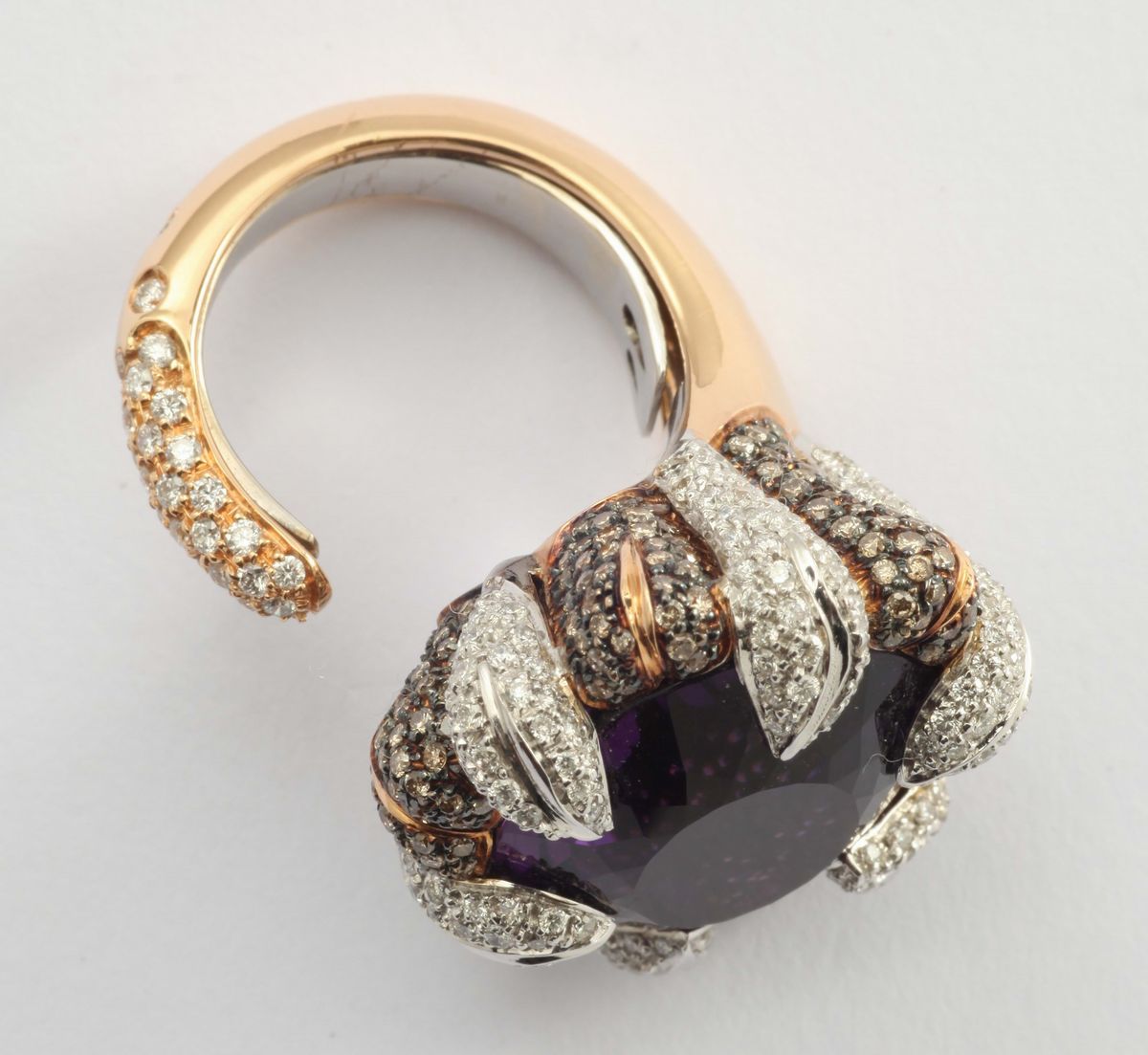 montatura in oro rosa con pavé di diamanti bianchi e brown. Firmato Brarda