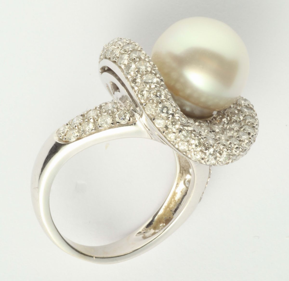 Anello con perla australiana e pavé di diamanti