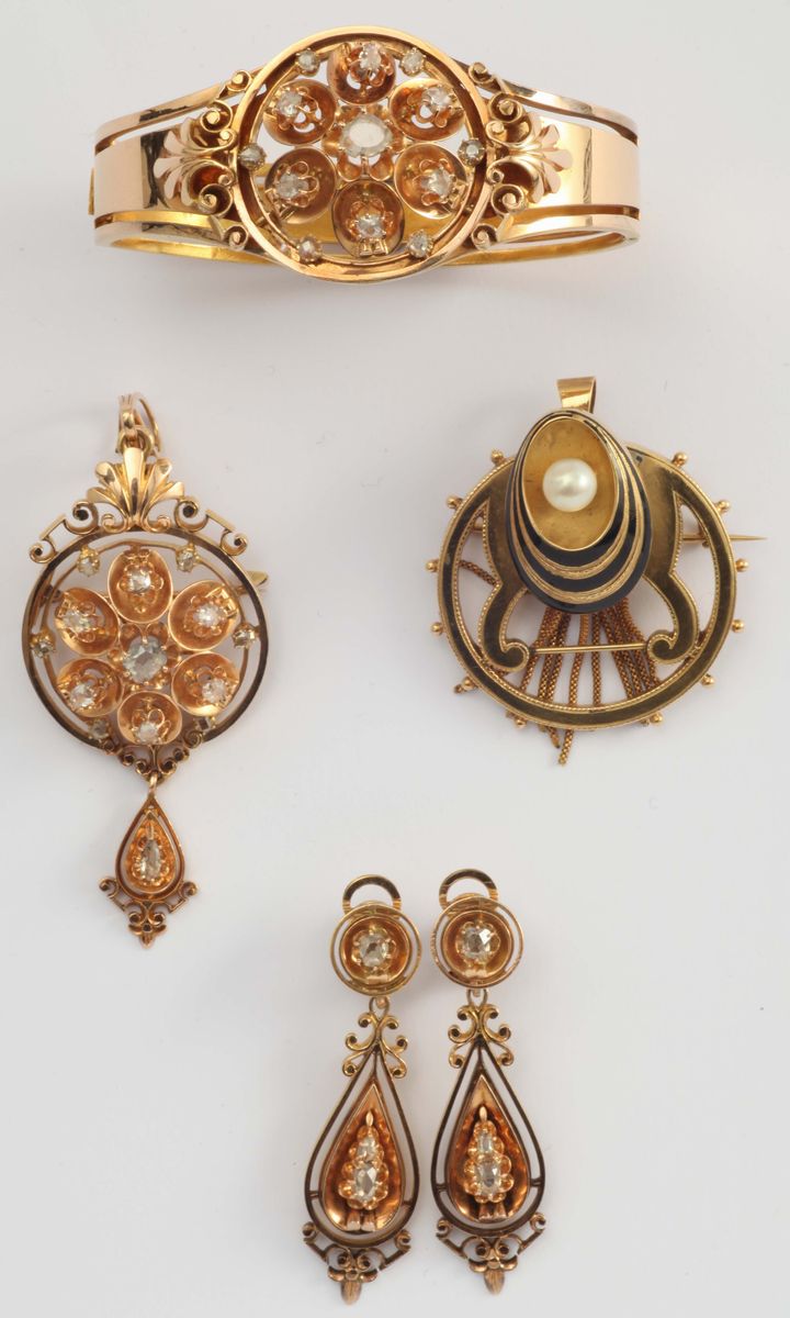 Lotto composto da parure in stile ed una spilla