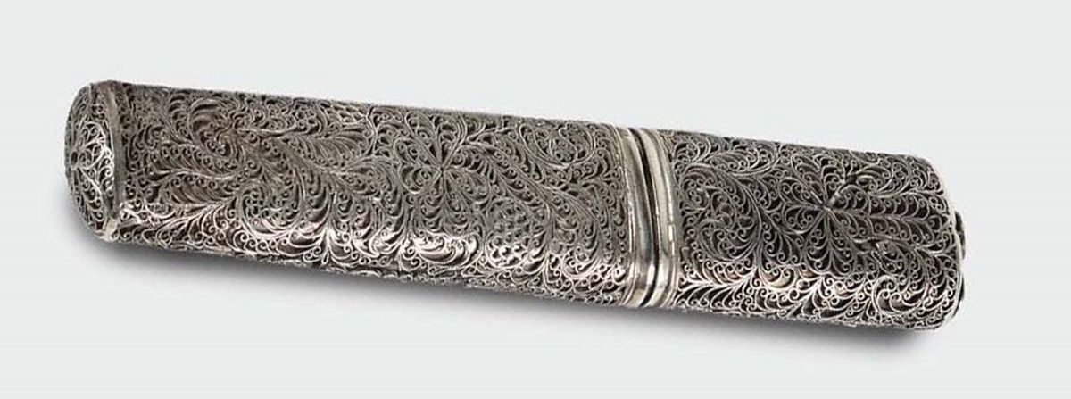 Astuccio porta aghi in filigrana d'argento, Liguria XIX secolo