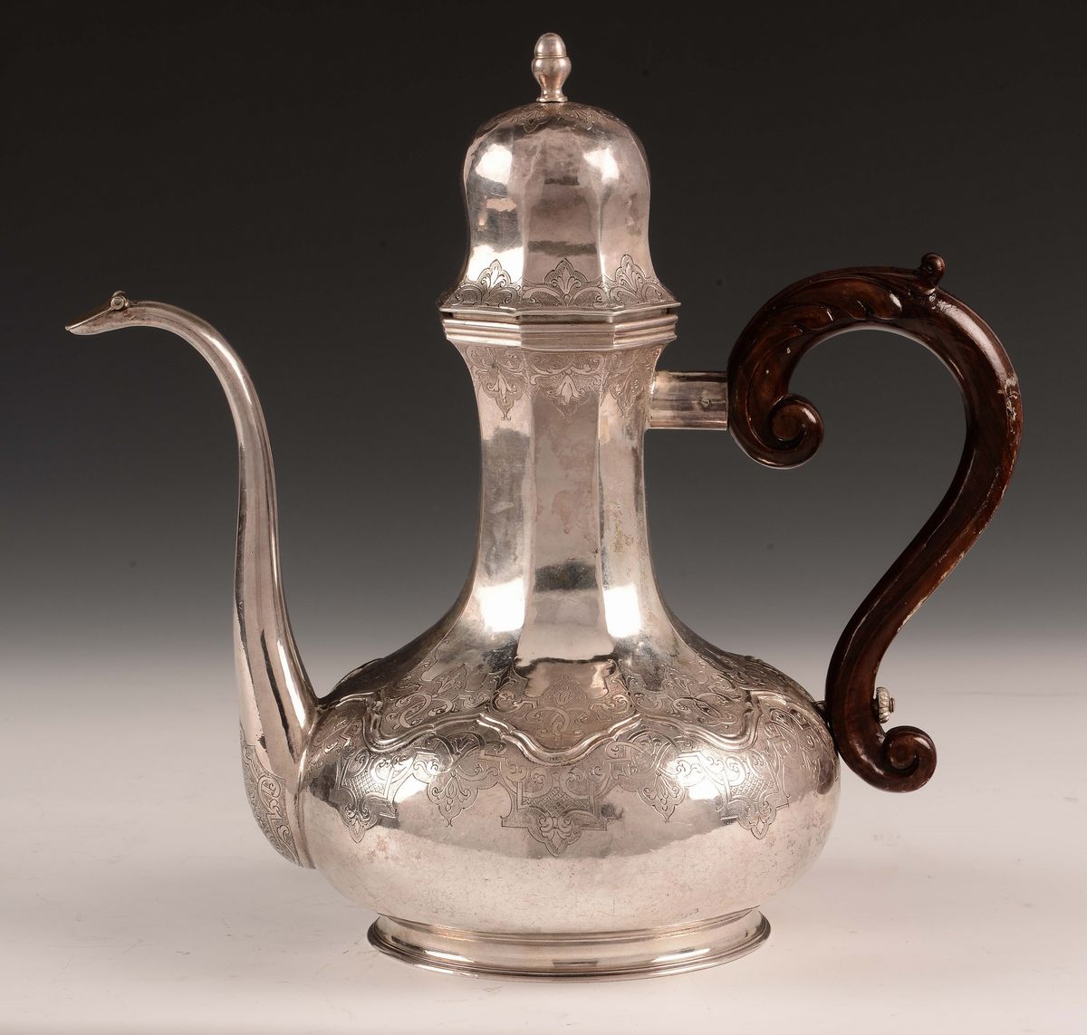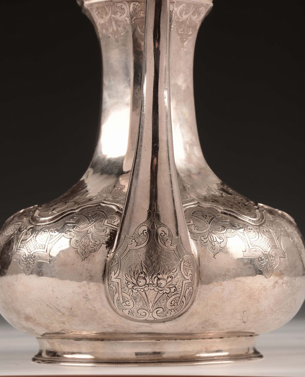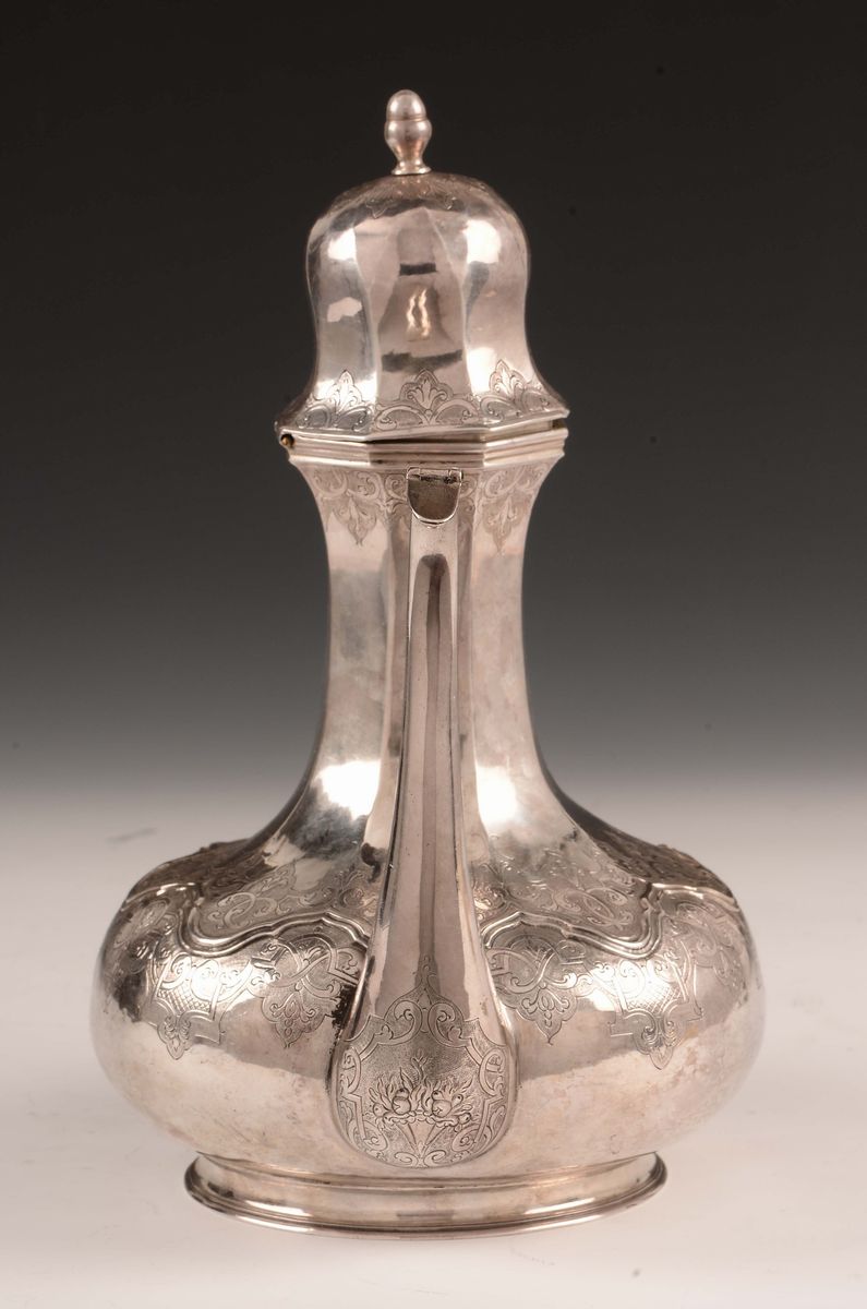 Caffettiera in argento fuso, sbalzato e cesellato, Milano seconda metà del XVIII secolo