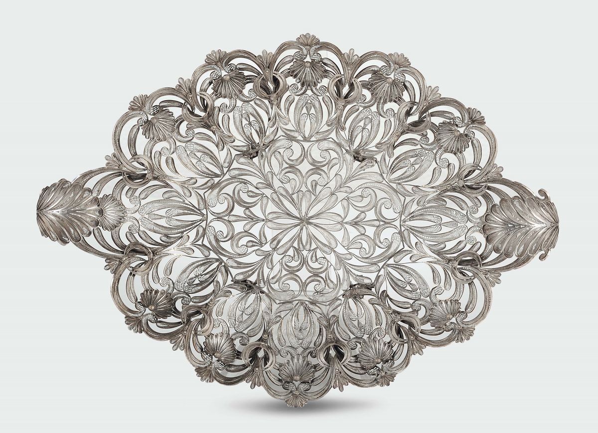Cestino ovale in filigrana d'argento, Genova XIX secolo