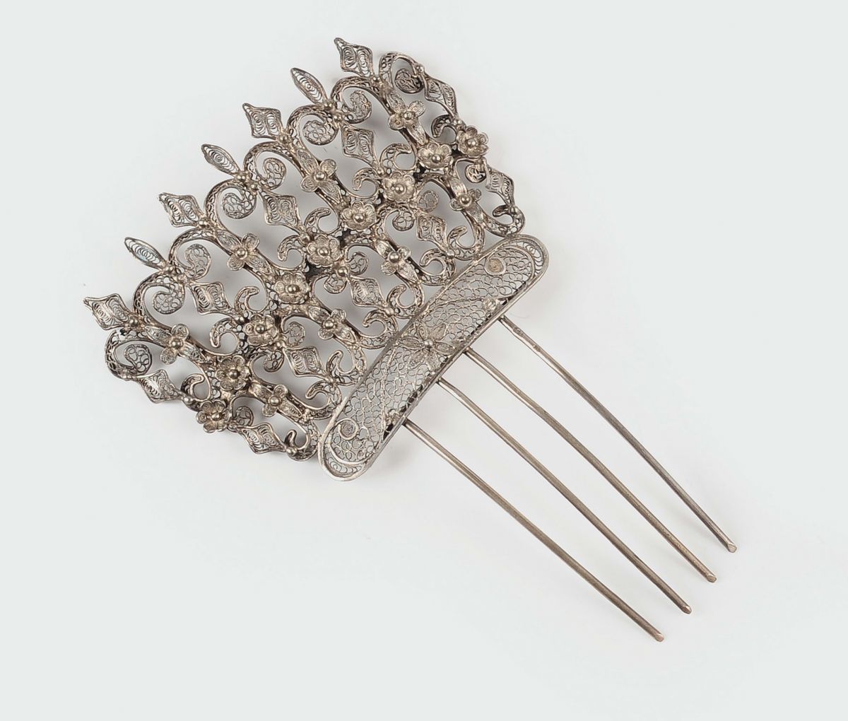Coppia di spilloni da acconciatura in filigrana d'argento, Genova XVIII-XIX secolo