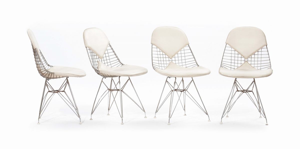 Quattro sedie DKR/2 in metallo smaltato e tessuto.Prod. Herman Miller, USA, 1950 ca.cm 48x84x39