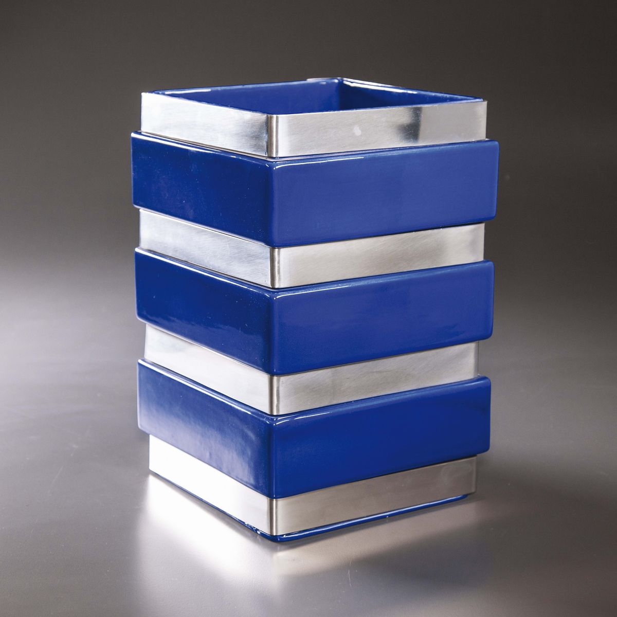 Vaso in ceramica e acciaio.Prod. Zanolli & Sebellin, Italia, 1970 ca.cm 20x32x20