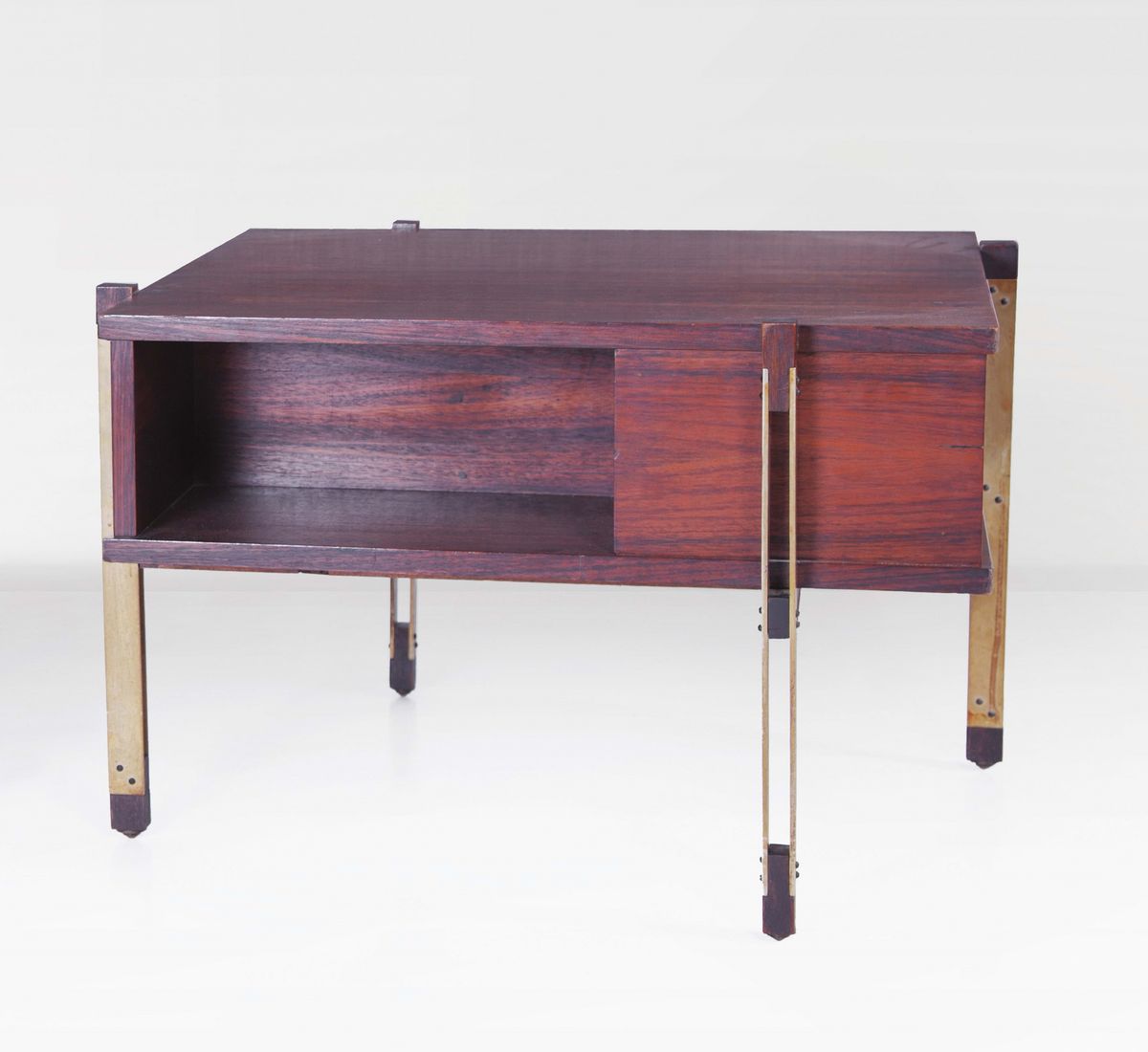 Tavolino in palissandro con gambe in alluminio anodizzato. Prod. M.I.M., Italia, 1960 ca.cm 68x46x68