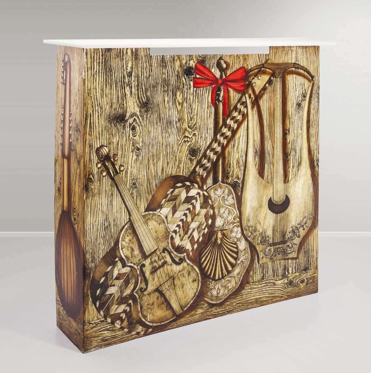 Copritermosifone in metallo serigrafato e decorato a mano.Prod. Fornasetti, Italia, 1950 ca.cm 99x100x22