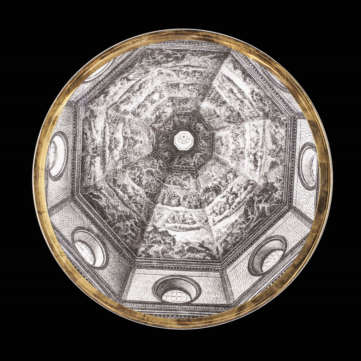 Tredici piatti Cupole d’Italia in porcellana. Prod. Italia, 1960 ca.cm 30; 24.5