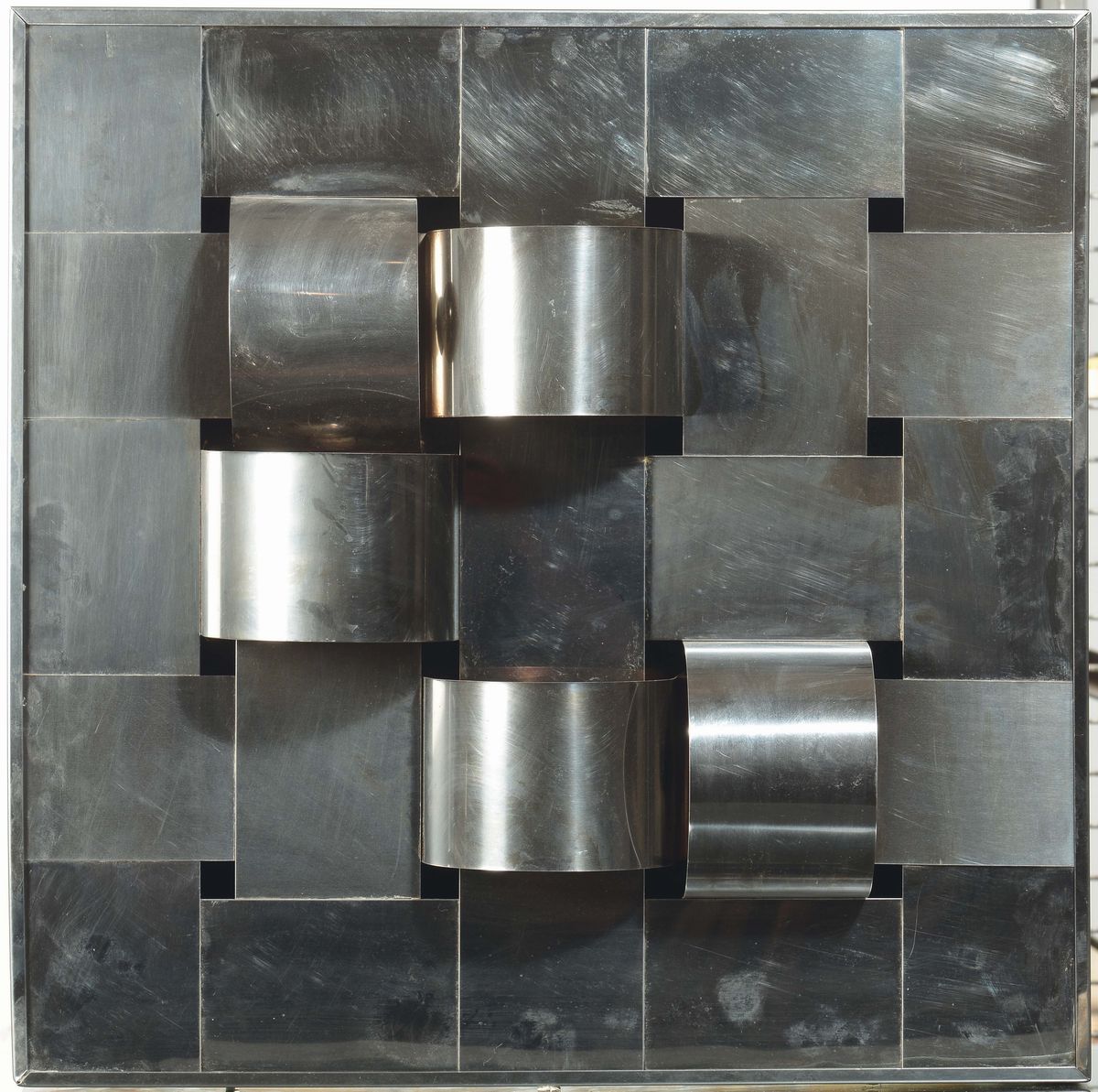 Pannello luminoso in acciaio modello 468. Prod. Reggiani, Italia, 1970 ca.cm 58x58x8