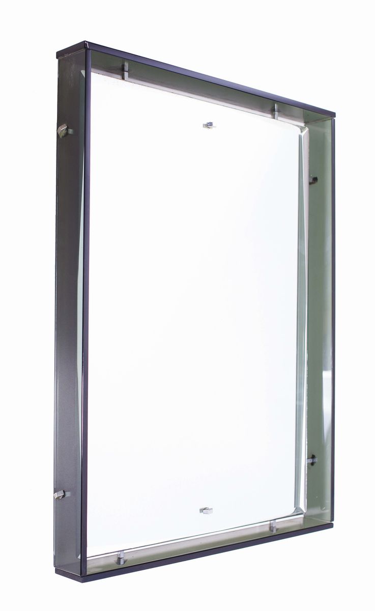 Specchio in vetro specchiato e fumé con supporti in metallo cromato