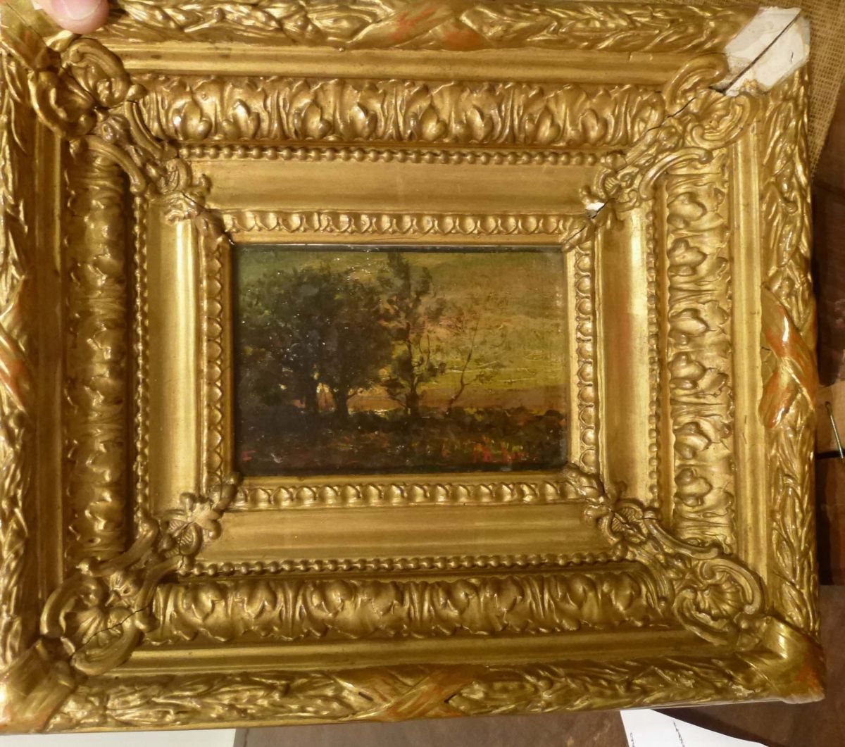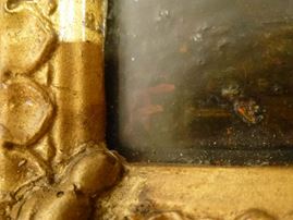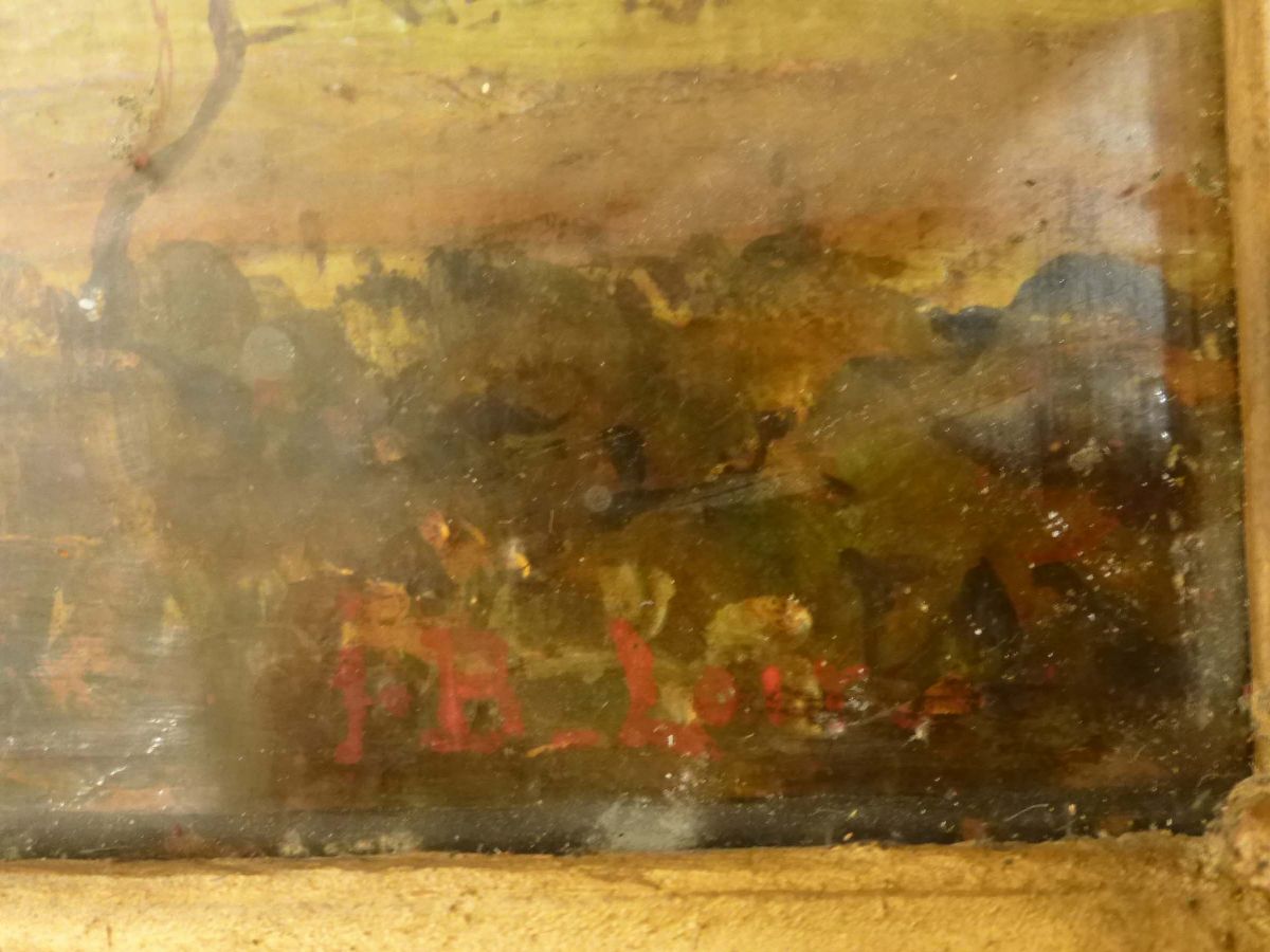 olio su tavoletta, cm 8,5x14, siglato in basso a sinistra