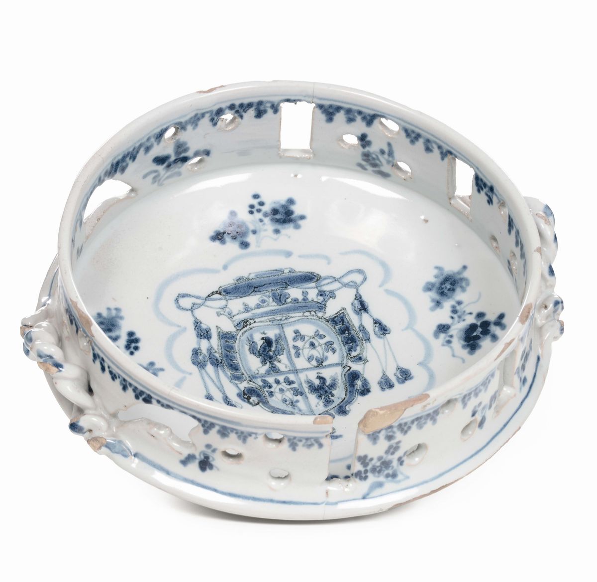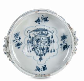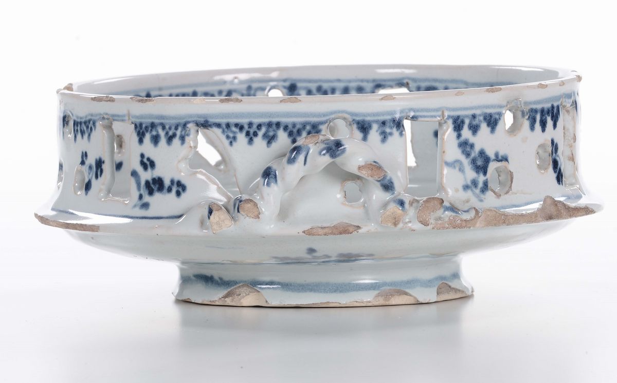 Alzata in maiolica bianca e blu, XVIII secolo