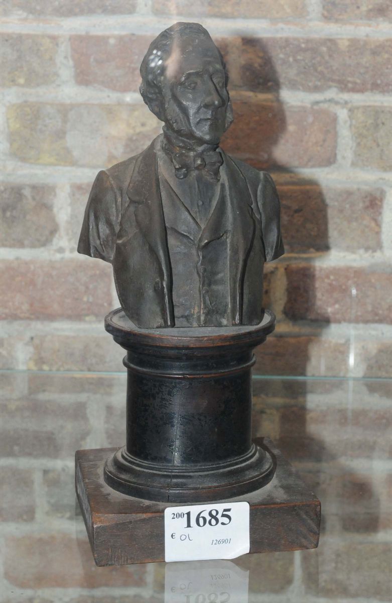 busto in bronzo a patina scura, altezza cm 13,5, su mensolina in legno dorato