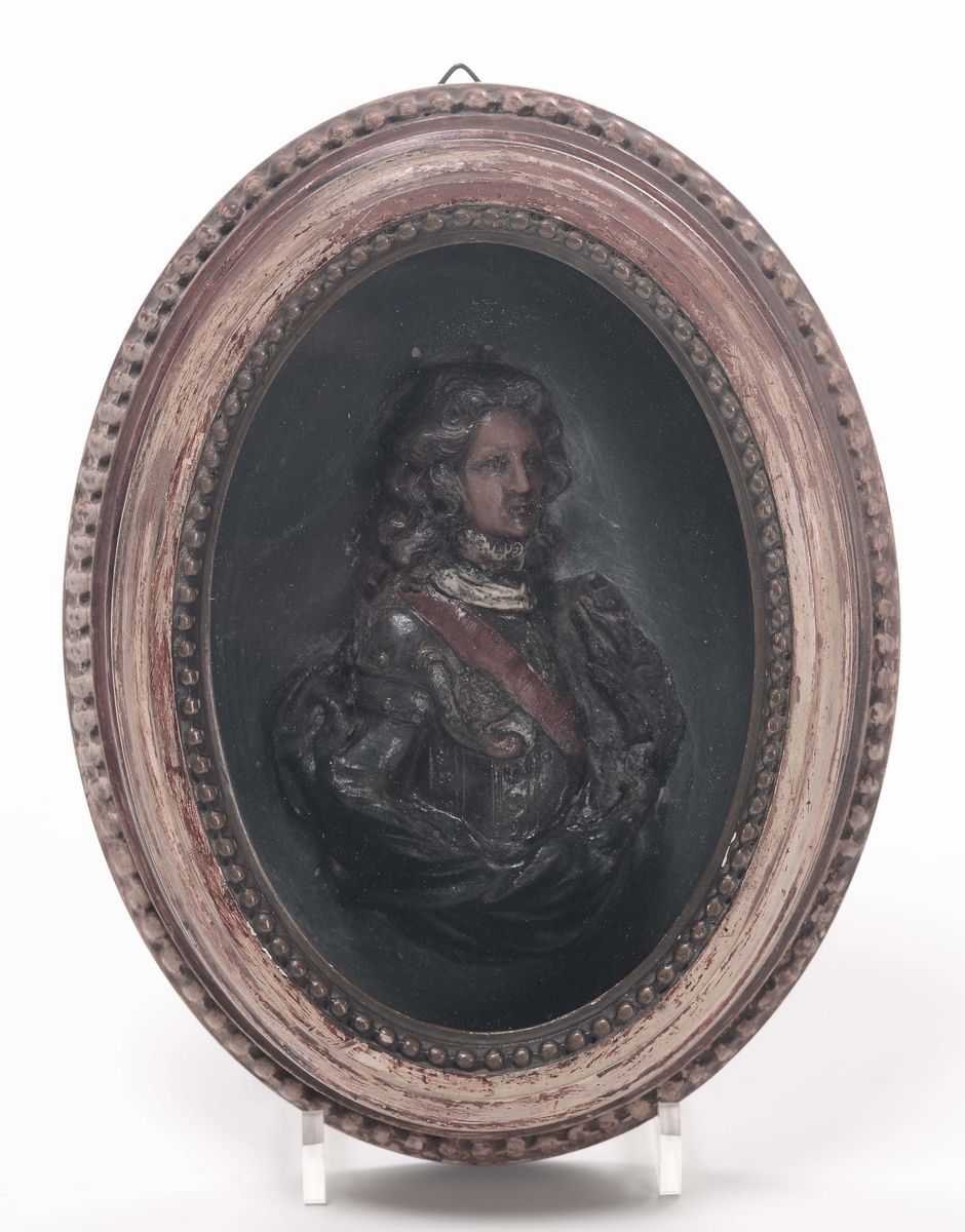 Bassorilievo ovale in cera raffigurante personaggio maschile, XIX secolo