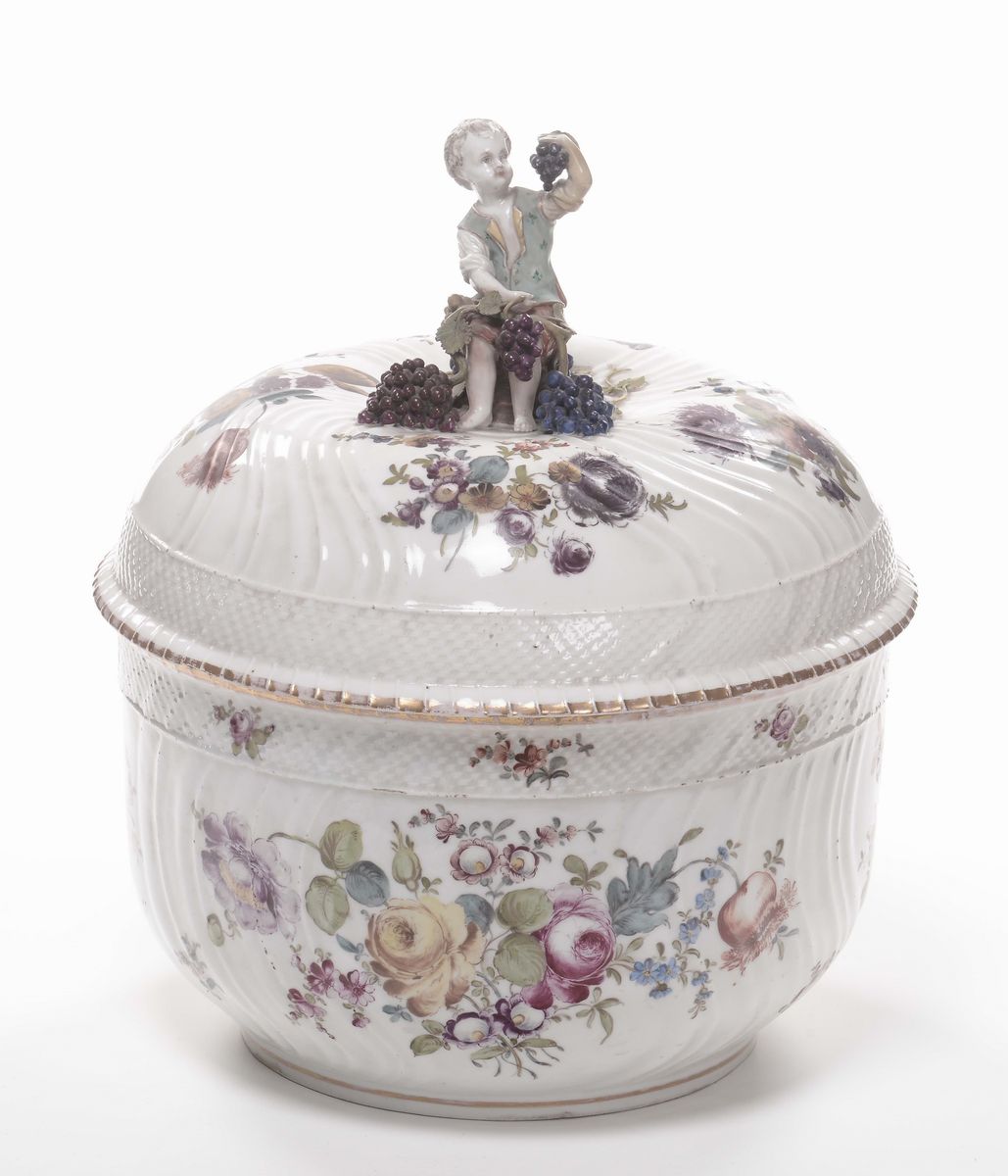Cachepot con coperchio in porcellana policroma, Meissen