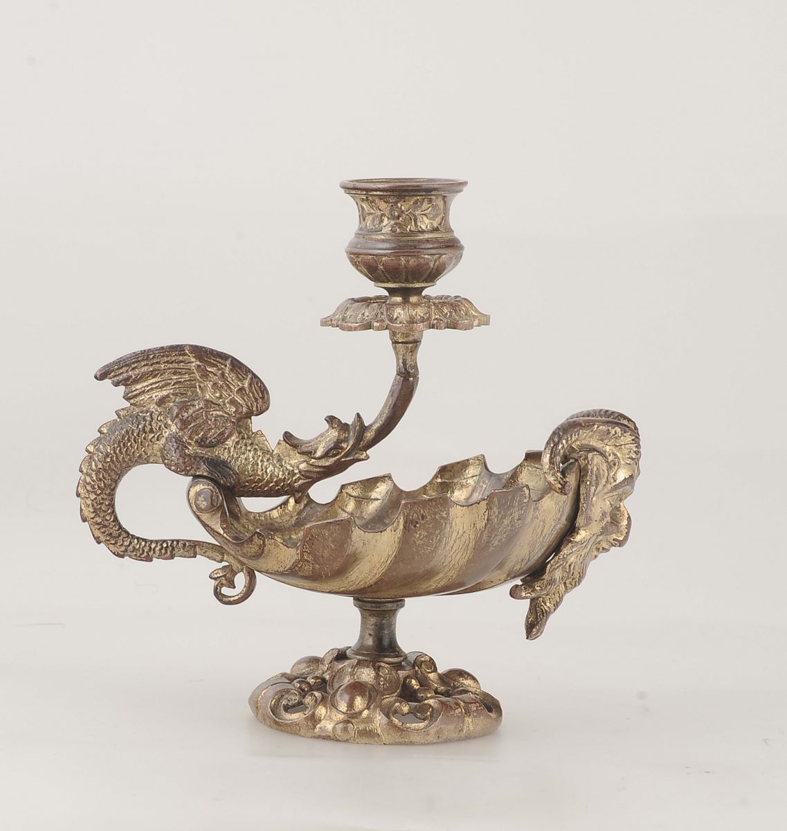 base a guisa di vaschetta a conchiglia con drago, altezza cm 16