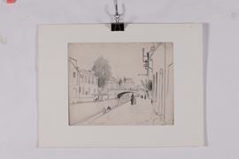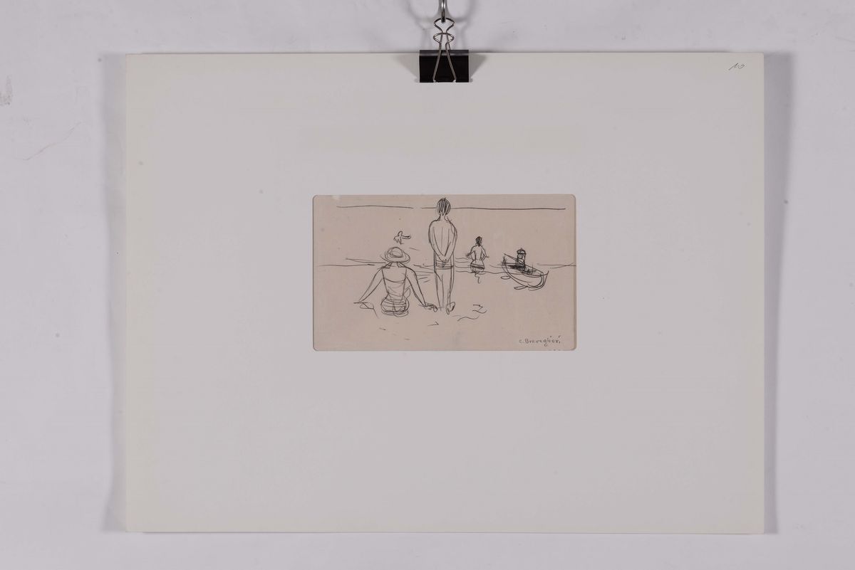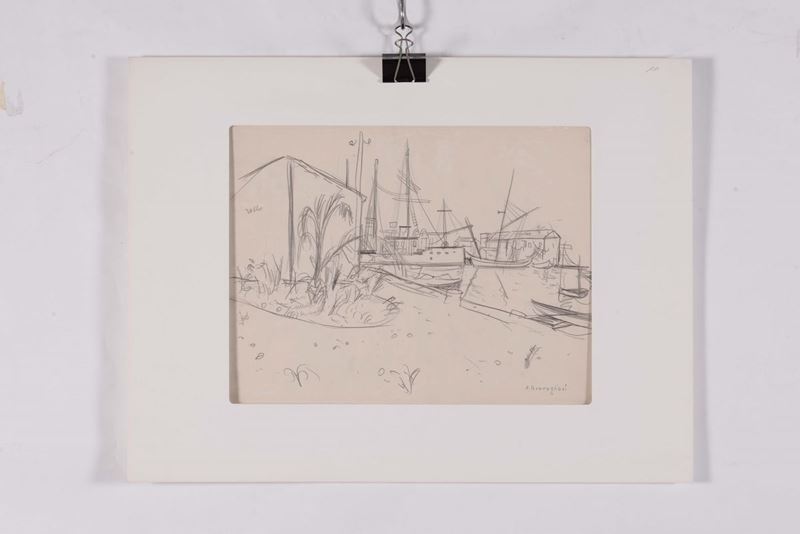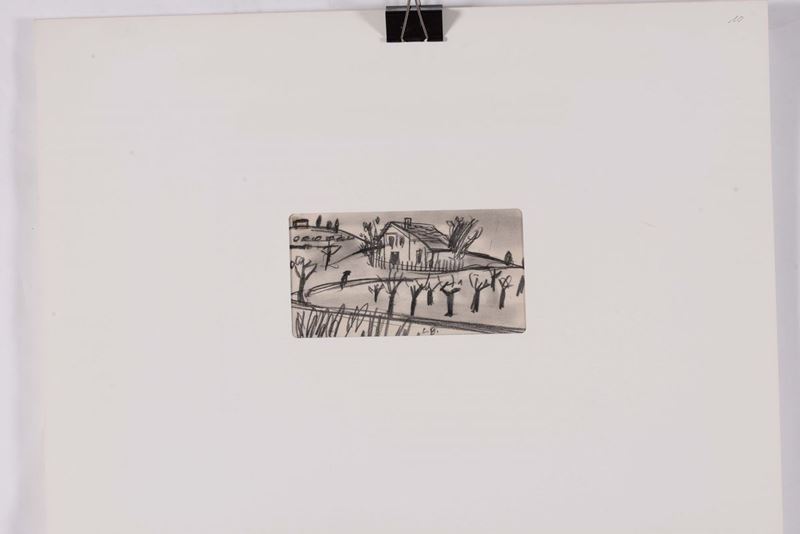 disegno su carta, cm 34x42,5 e altri 3 disegni a matita su carta con soggetti e misure diverse