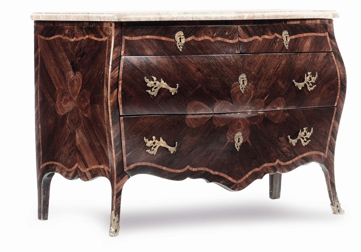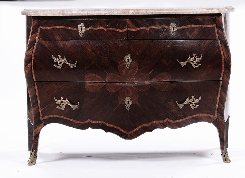 Comò Luigi XV lastronato in palissandro ed intarsiato, Genova XVIII secolo