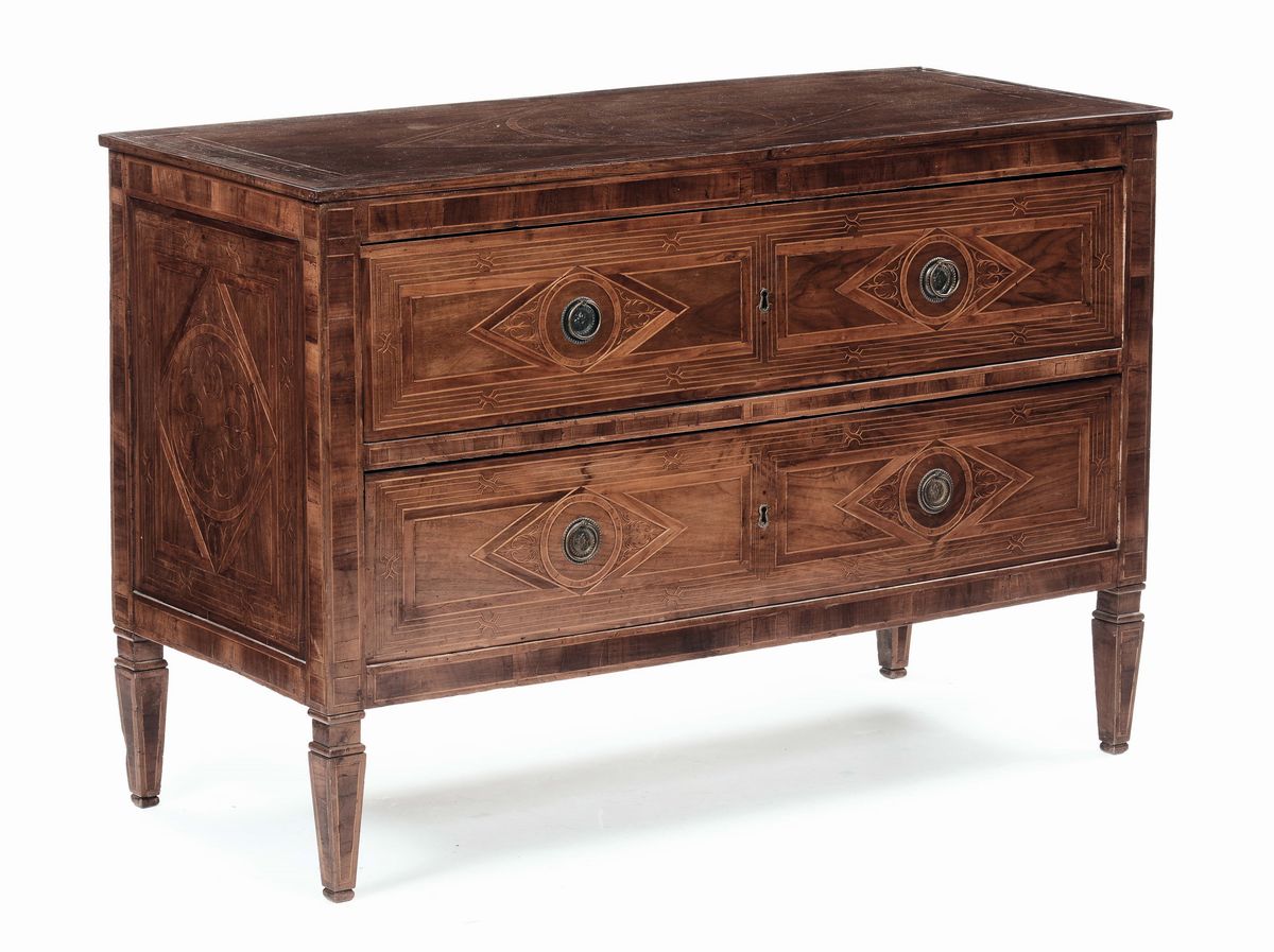 Comò Luigi XVI lastronato ed intarsiato, XIX secolo