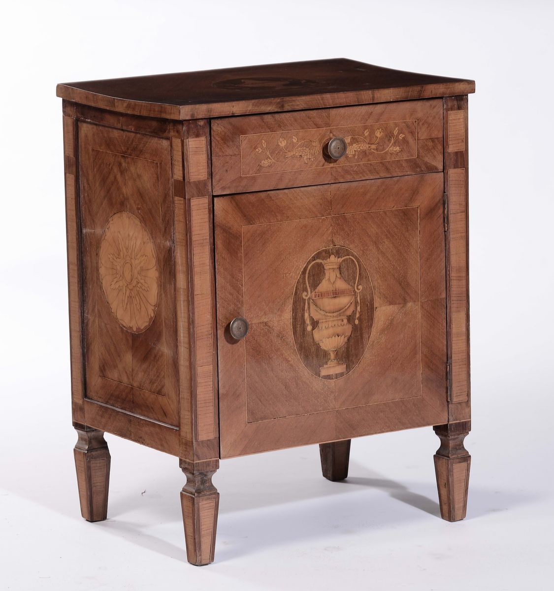 Comodino in stile Luigi XVI lastronato ed intarsiato