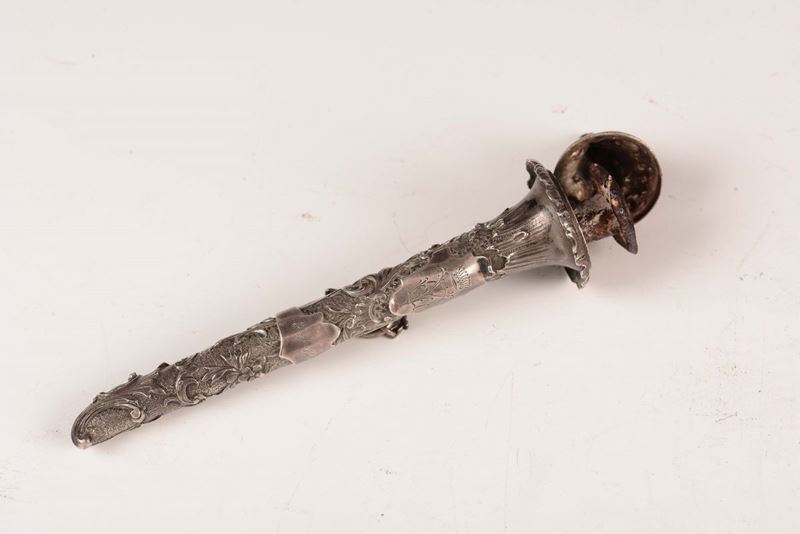 Contenitore in argento sbalzato a pellacce a forma di cornucopia, Italia XIX-XX secolo