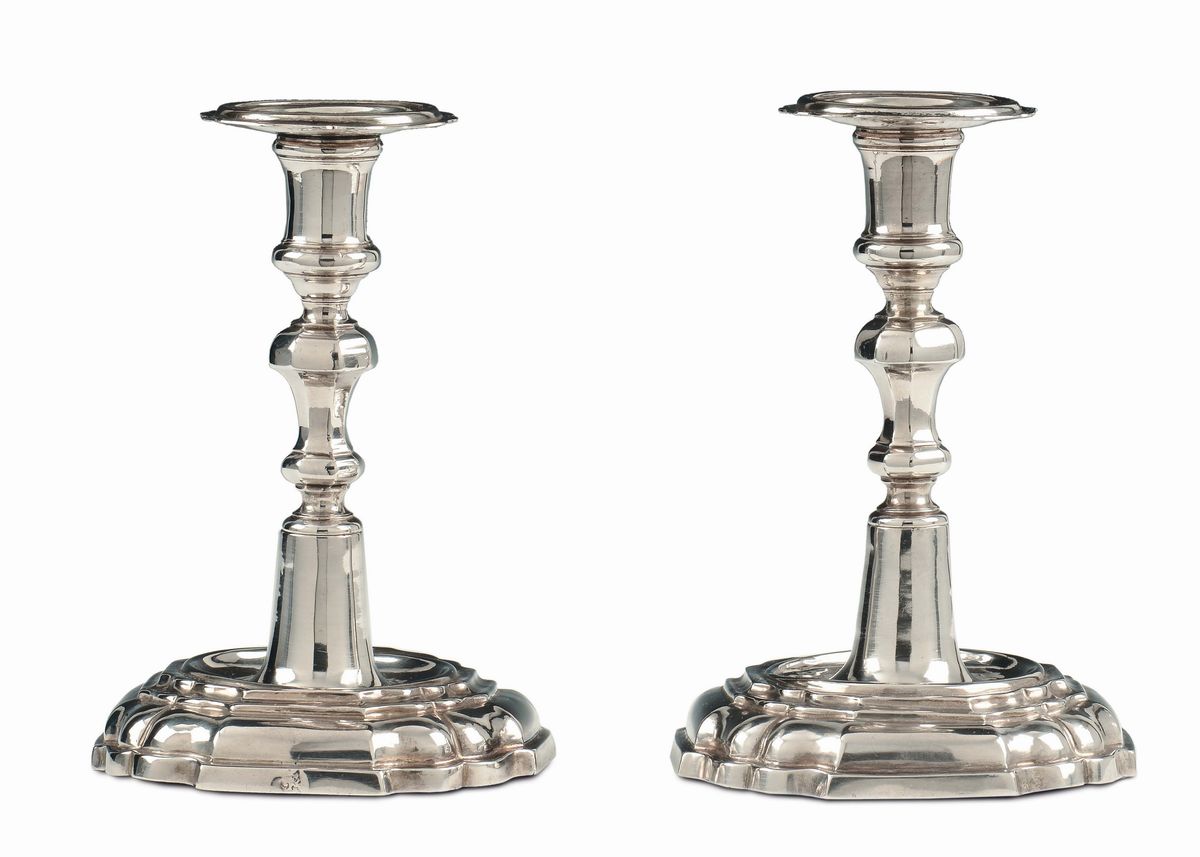 Coppia di candelieri in argento fuso e sbalzato, bottega del San Michele a Milano, seconda metà del XVIII secolo