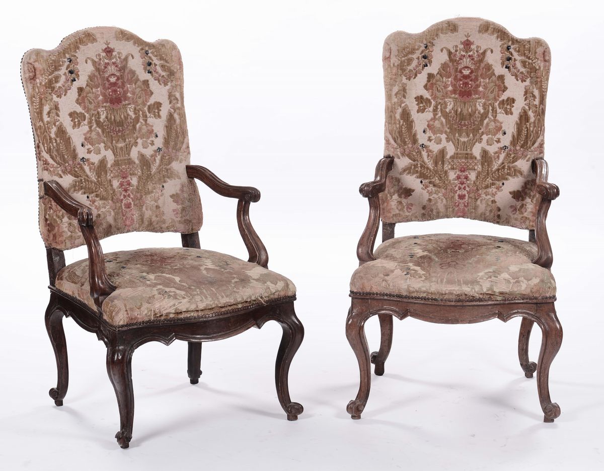 Coppia di poltrone Luigi XIV in noce, XVIII secolo