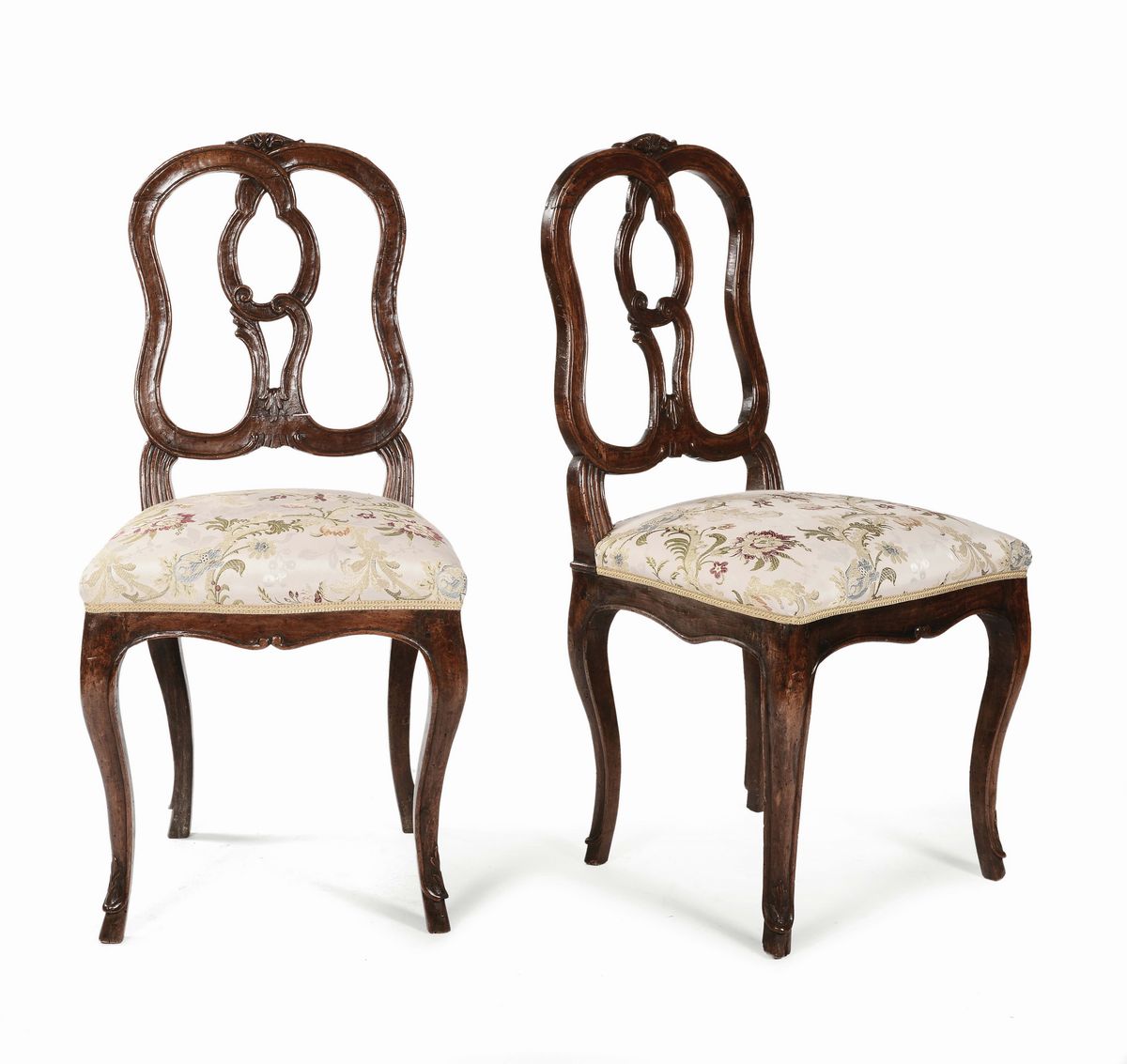 Coppia di sedie Luigi XV in noce, Veneto XVIII secolo