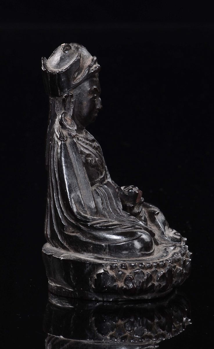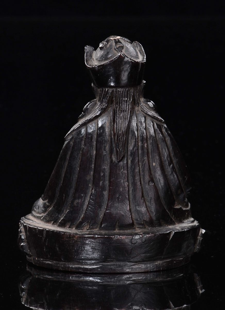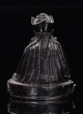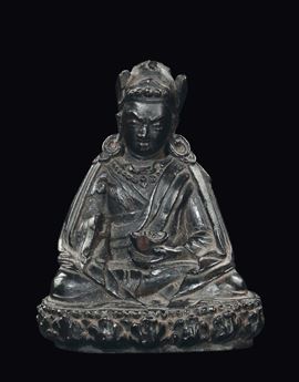 Figura di Padmasambahava in legno scolpito, Tibet fine XVIII inizi XIX secolo