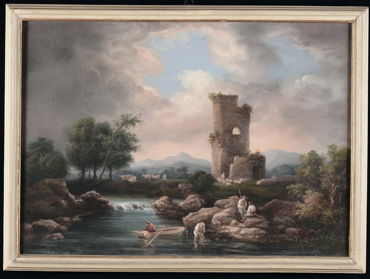 quattro dipinti a tempera, cm 42x59