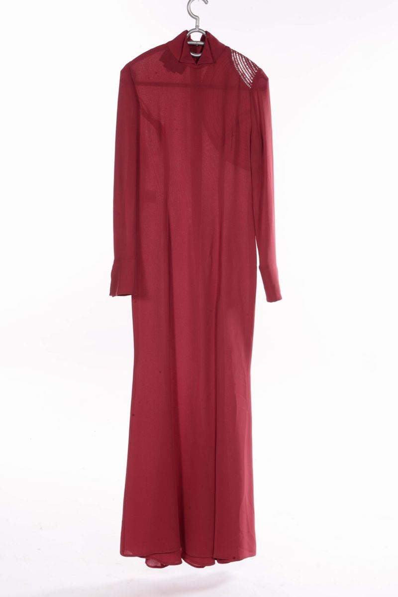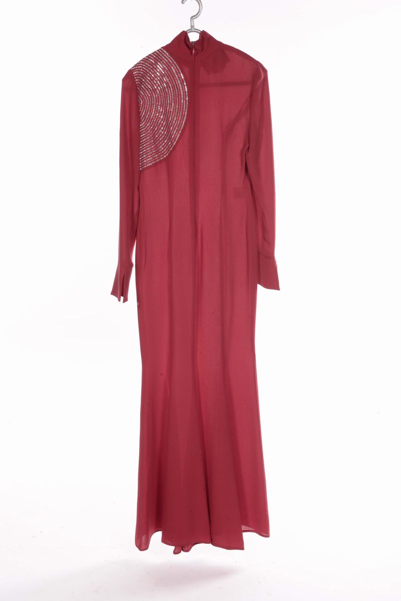 Gai Mattiolo, abito lungo fiamma maniche lunghe collo alto