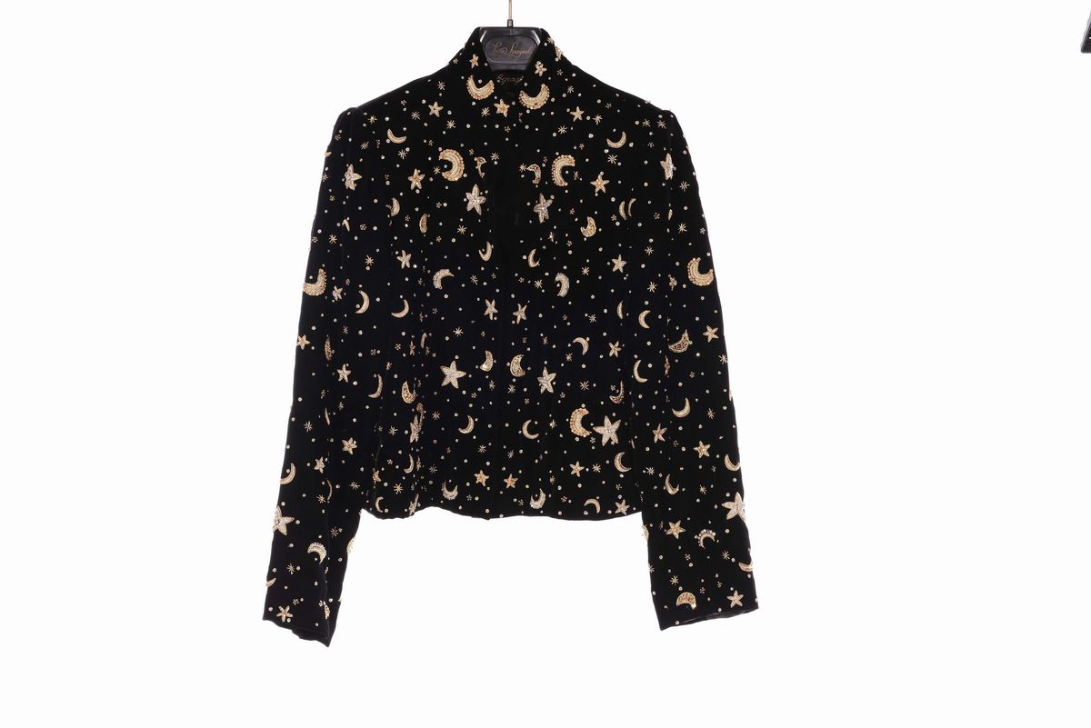 Henbo, spaghetti Londra giacca corta velluto nero paillettes e perlineoro