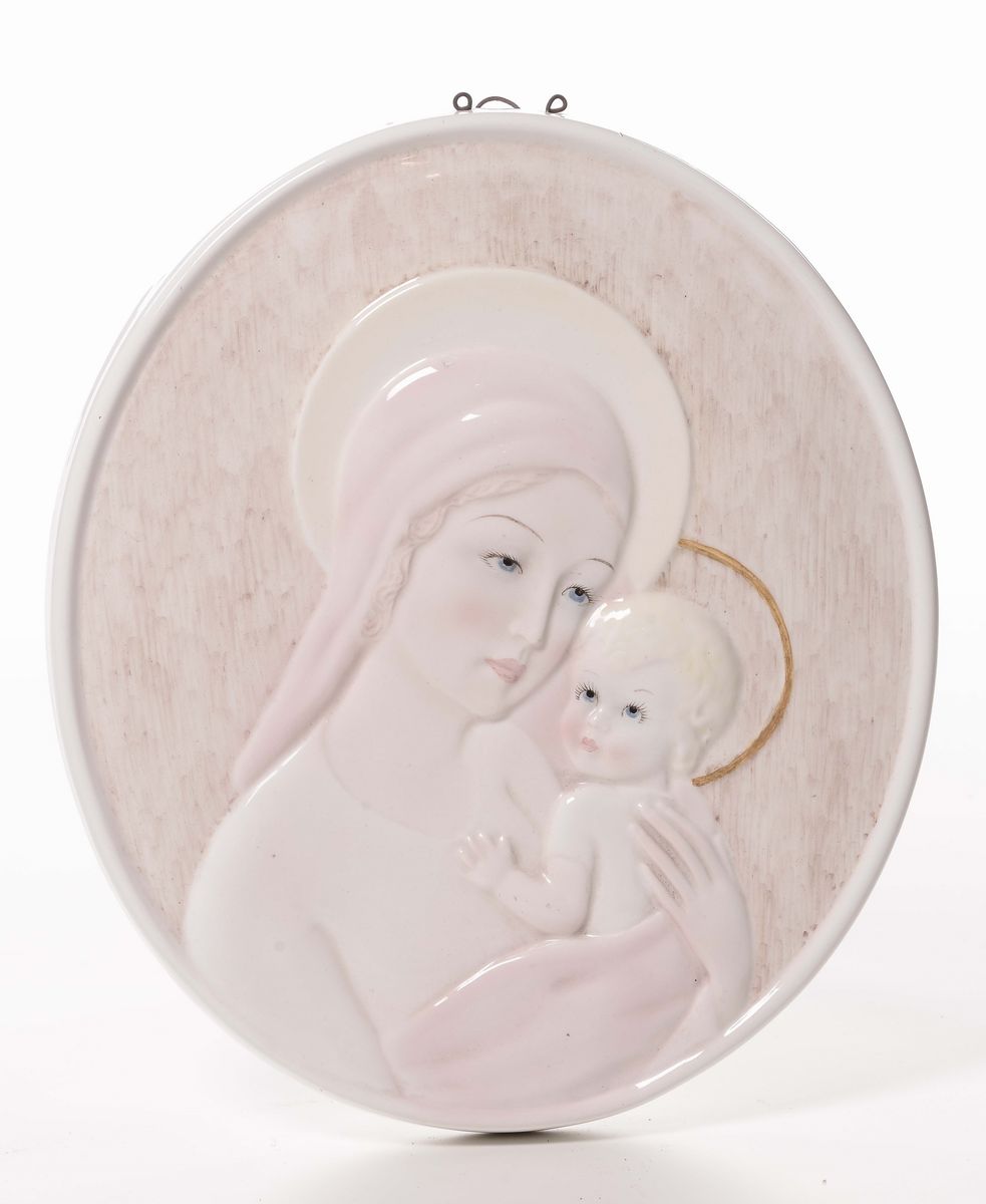 bassorilievo in ceramica raffigurante Madonna, cm 29,5x25,5
