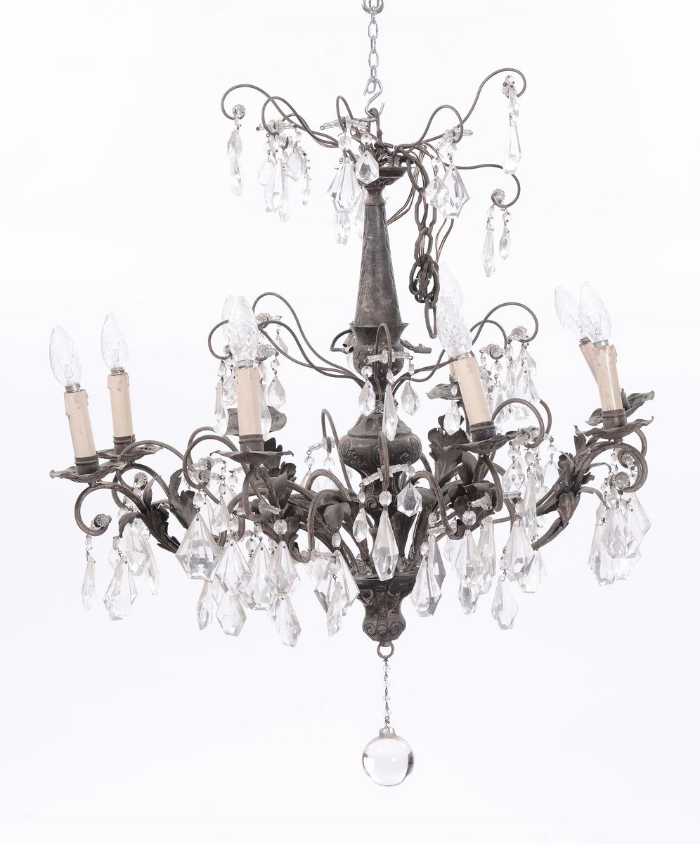 Lampadario a otto luci in metallo e cristalli