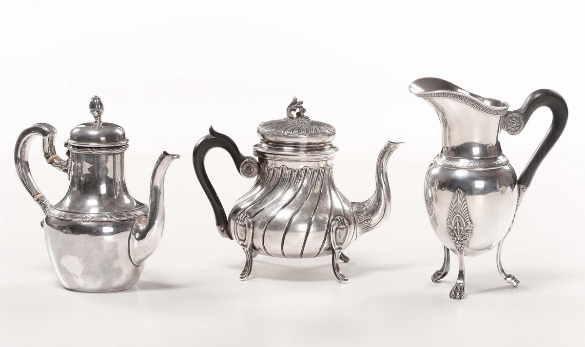 Lotto composto da lattiera e due piccoli versatoi in argento