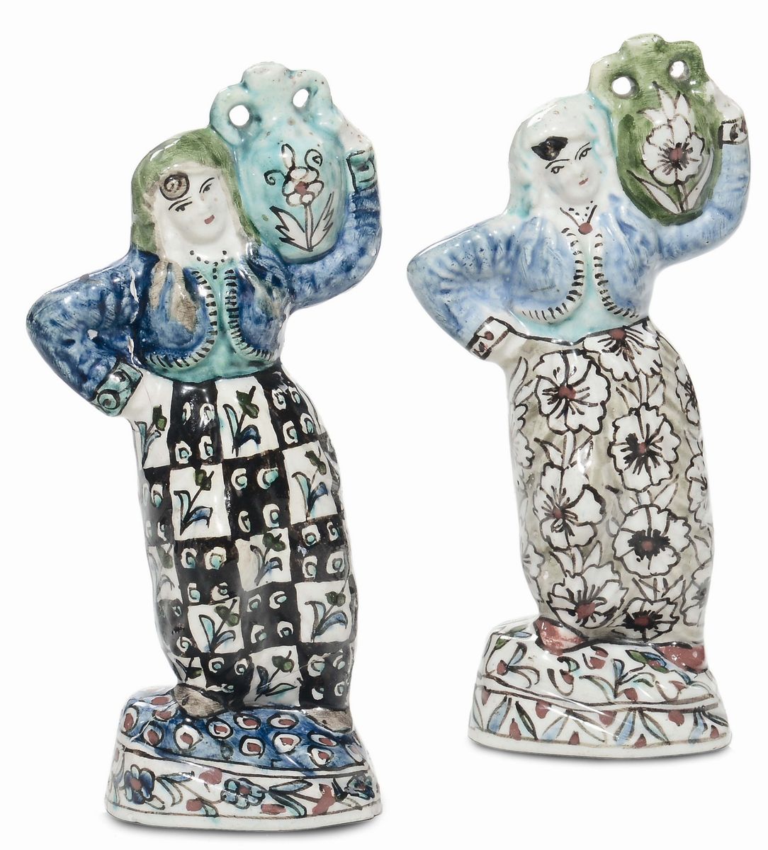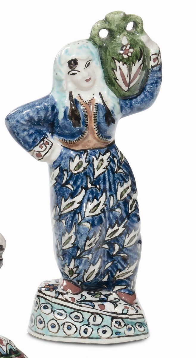 Lotto composto da tre statuine in terraglia raffiguranti donne di Turchia in costumi tipici, Kuthaya (?) inizi XIX secolo [..]