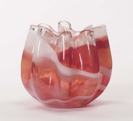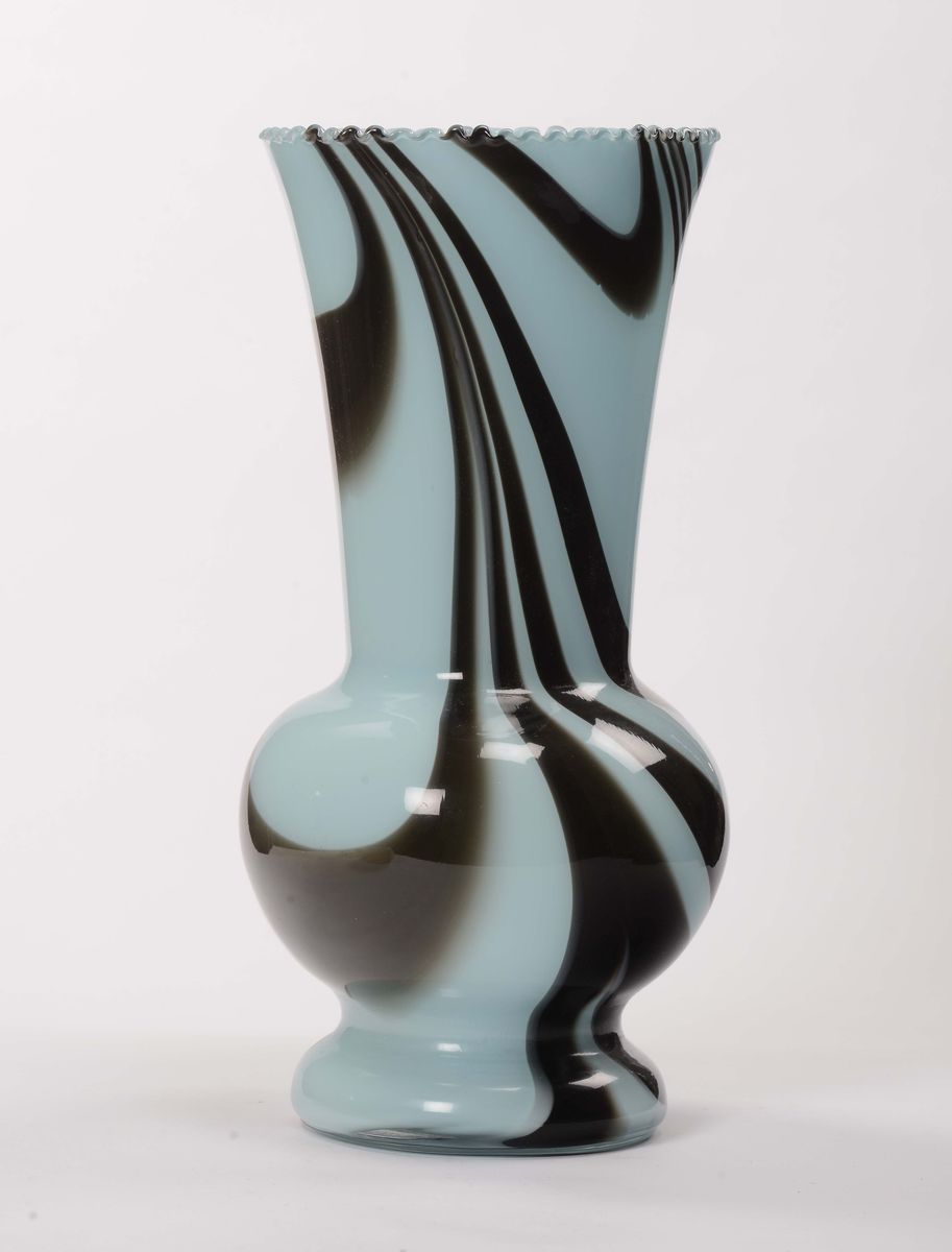 Lotto composto da vaso in vetro azzurro e marrone e vaso in vetro arancio marmorizzato