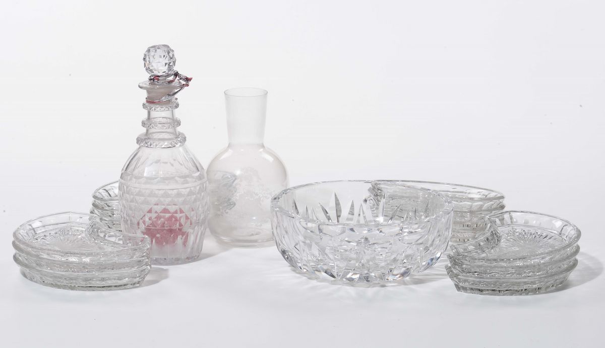 Lotto di cristalli tra cui centrotavola e altro