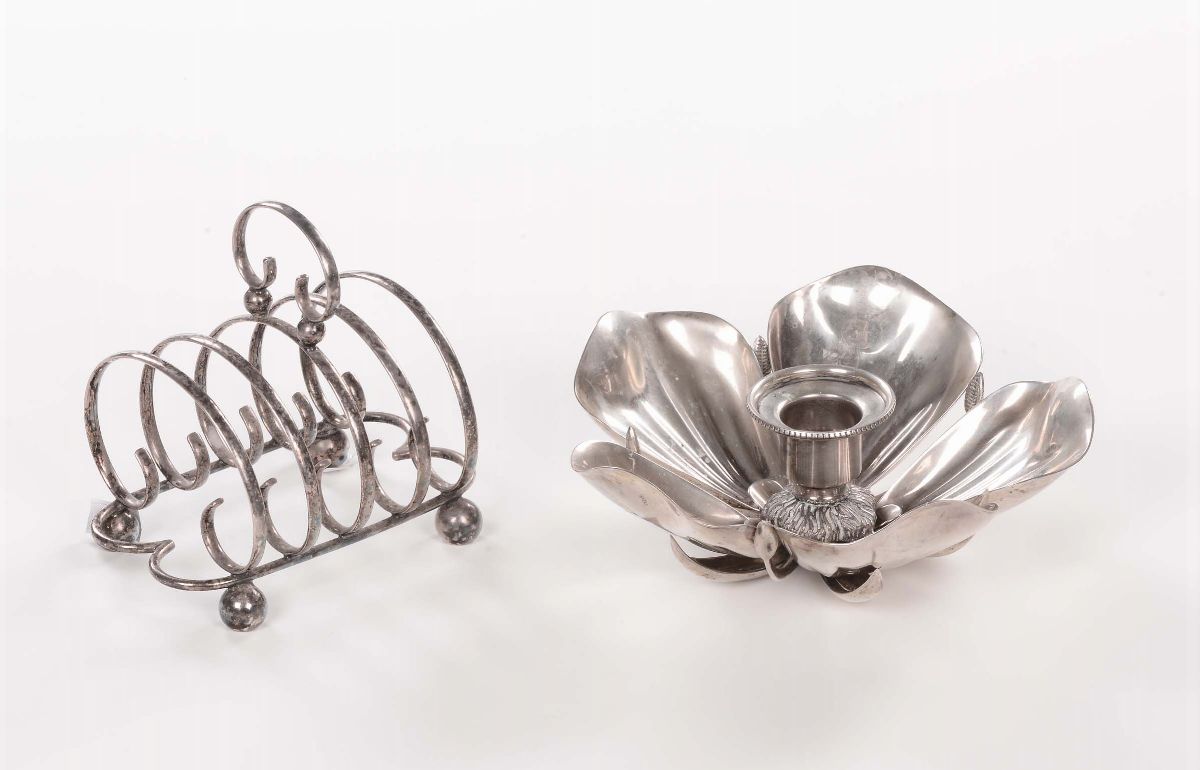 Lotto di due pezzi in metallo argentato