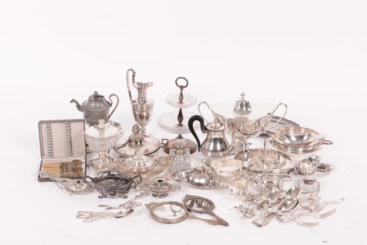 Lotto di oggetti in metallo argentato