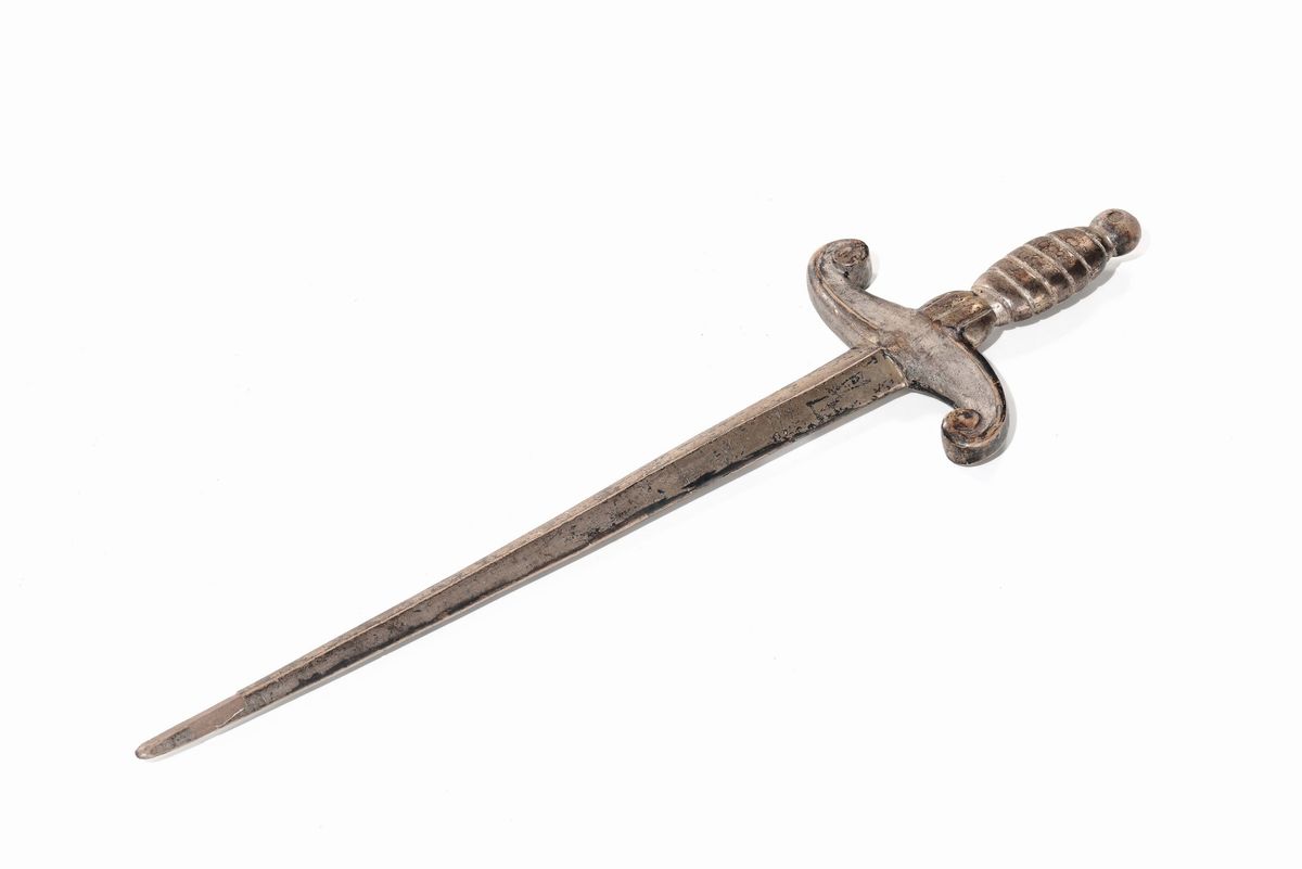 Modello di spadino in legno scolpito e dorato alla mecca. Marche XVIII secolo