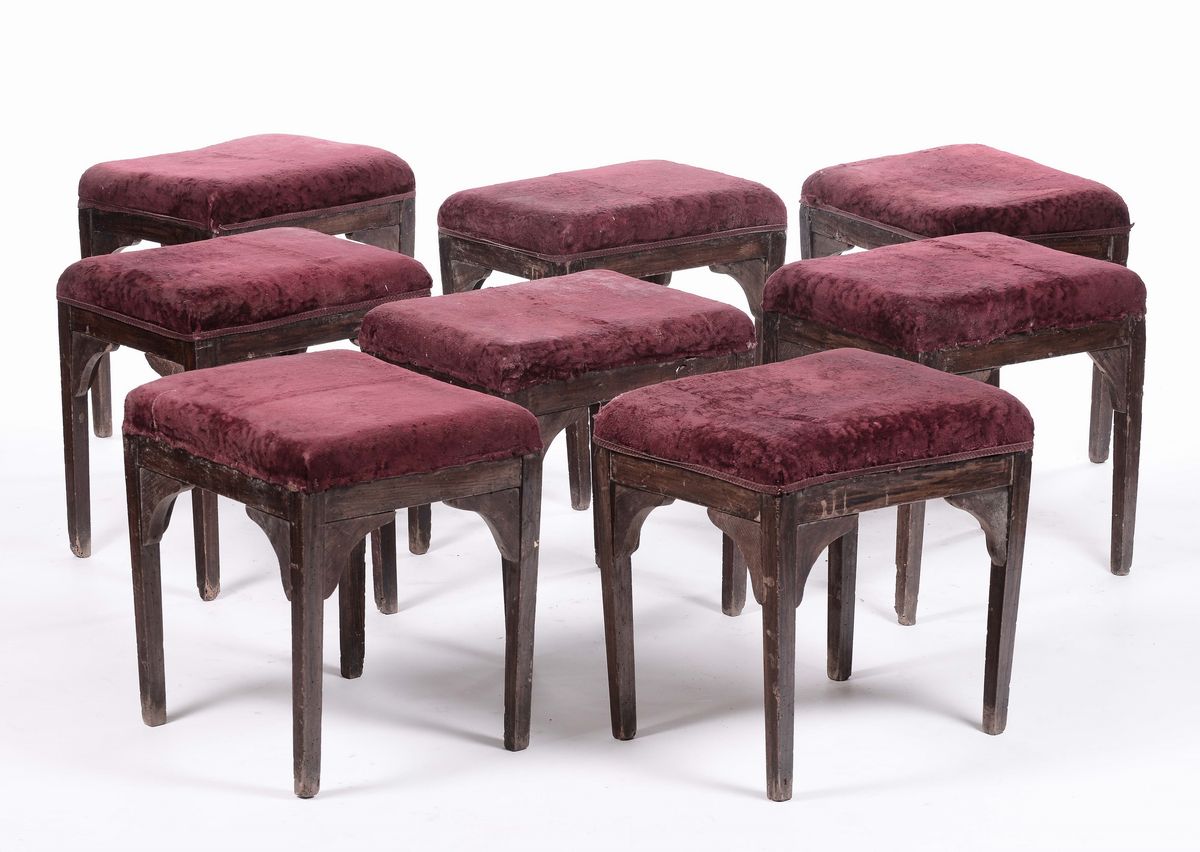 Otto sgabelli in legno, XIX secolo