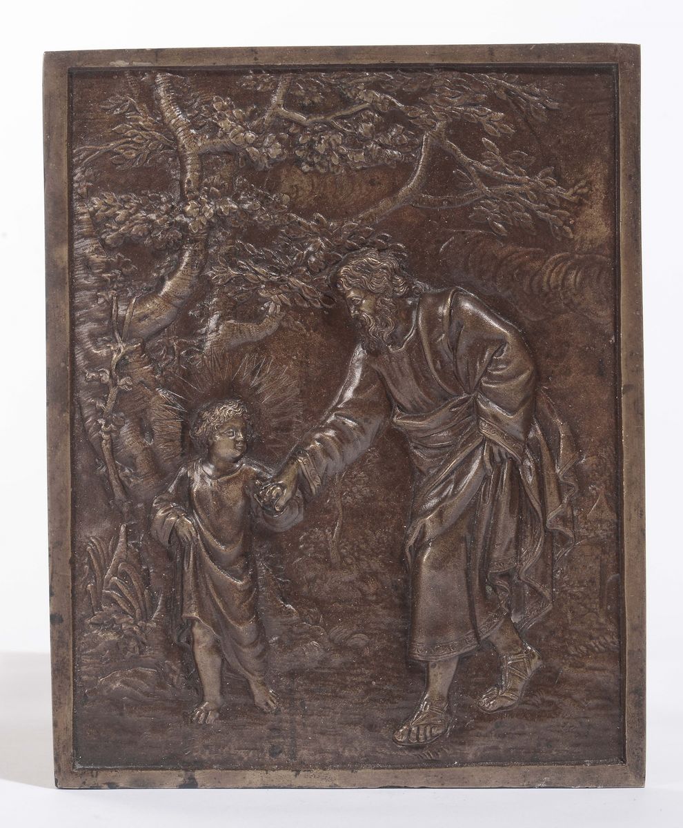 Placca in bronzo raffigurante San Giuseppe e Gesù Bambino, XVII secolo
