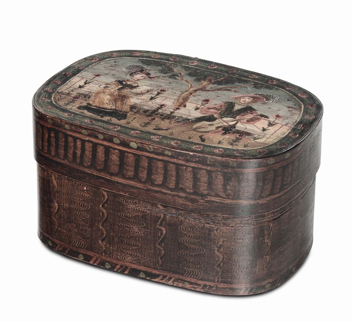 Scatola ovale in legno dipinto