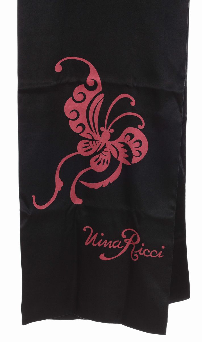 Sciarpa seta nera con farfalla rossa Nina Ricci