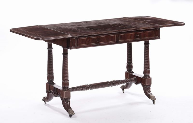 due cassetti sulla fascia, montanti torniti riuniti da traversa, cm 100x69x78