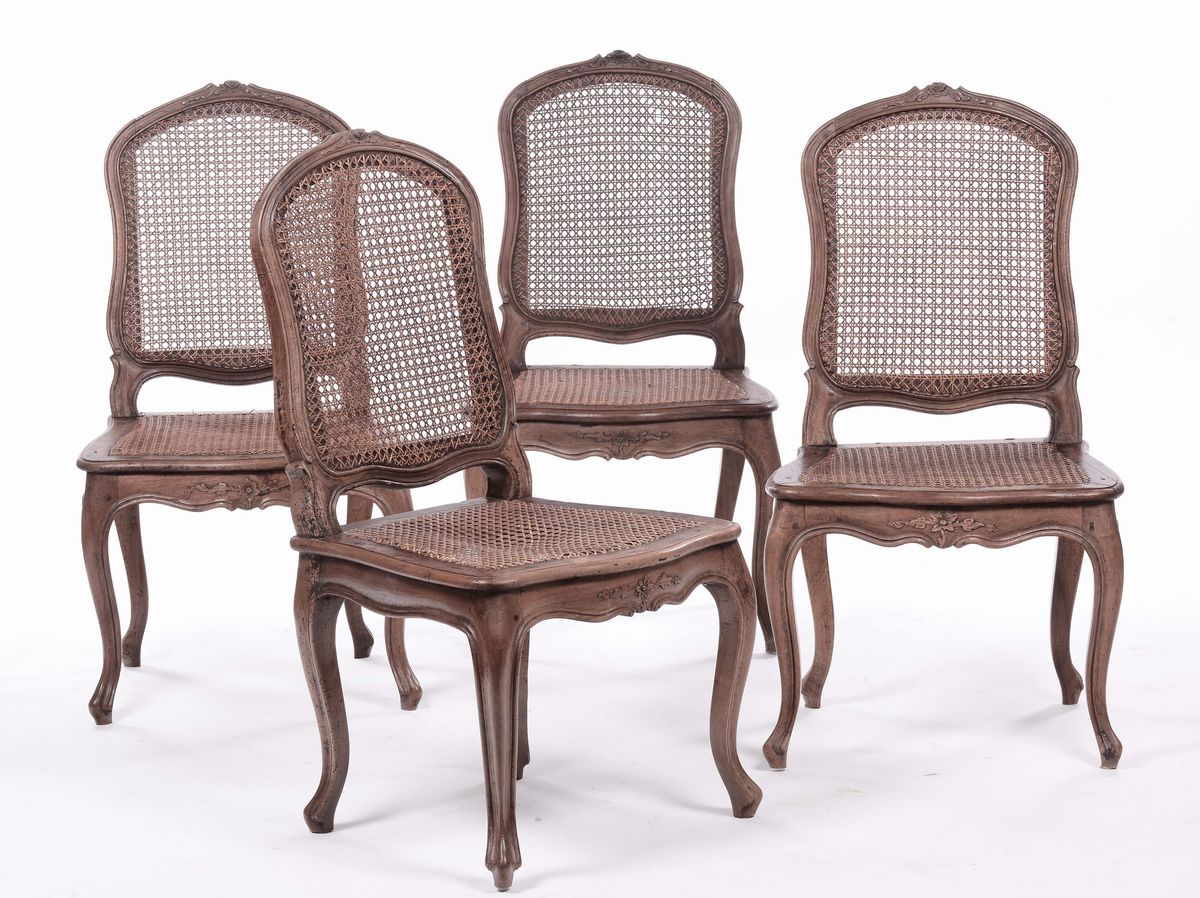 Tavolo lastronato Luigi XV e quattro sedie, Genova XVIII secolo